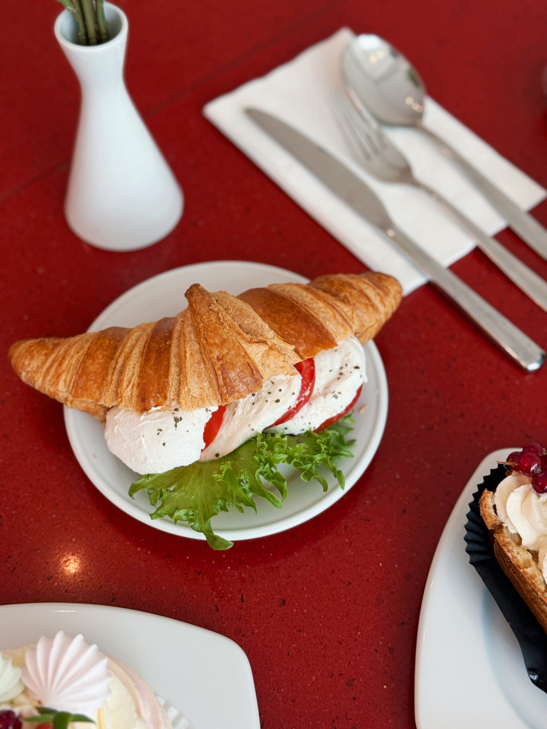 – croissant with tomato and mozzarella,