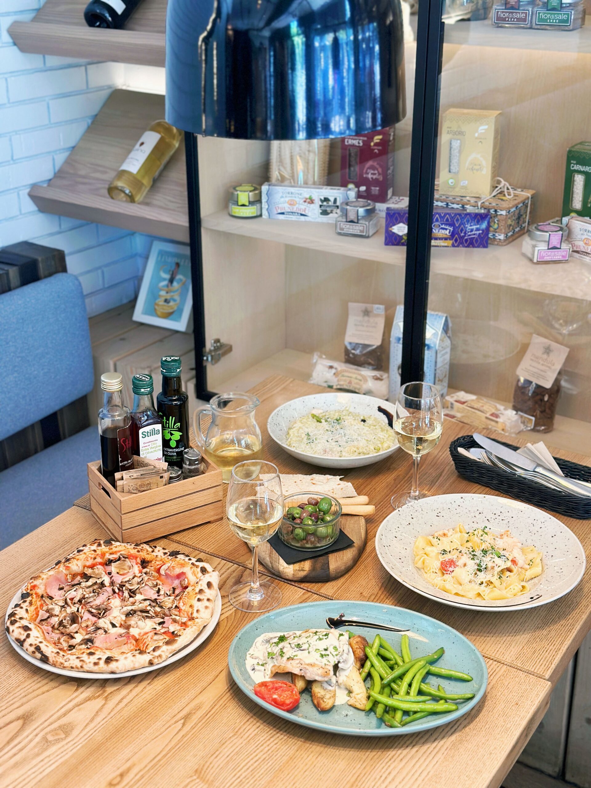 The menu displays a huge variety of Italian dishes: 20+ types of pizza based on traditional Italian recipes, different pastas, Italian appetizers, hot dishes and desserts. Generous portions are topped with Parmesan, making it an ultimate cheese lover’s paradise.