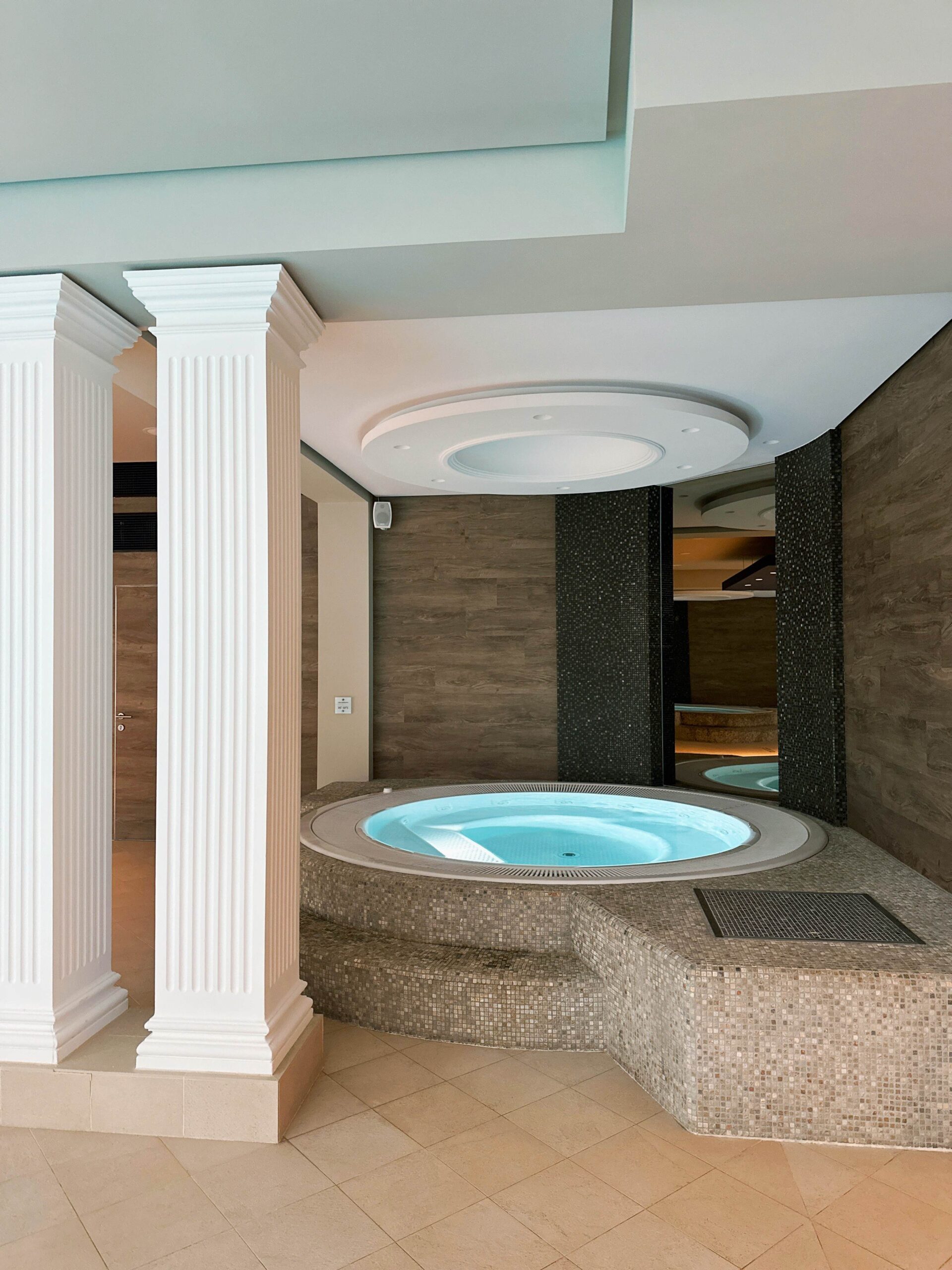 Keskuses on esteetiliselt kujundatud vee-puhkeala. Külalisi ootavad erineva intensiivsusega juga- ja kaskaadmassaažiga bassein, mullivann, samuti seitse tüüpi saunasid: saun, kaks aurusauna, Caldarium ja Sanarium, infrapuna- ja Türgi saunad. Basseini vesi desinfitseeritakse uuendusliku tehnoloogia abil, tänu millele jääb vesi kristallselgeks, ilma kahjulike desinfitseerimise kõrvalsaaduste ja kloorilõhnata.