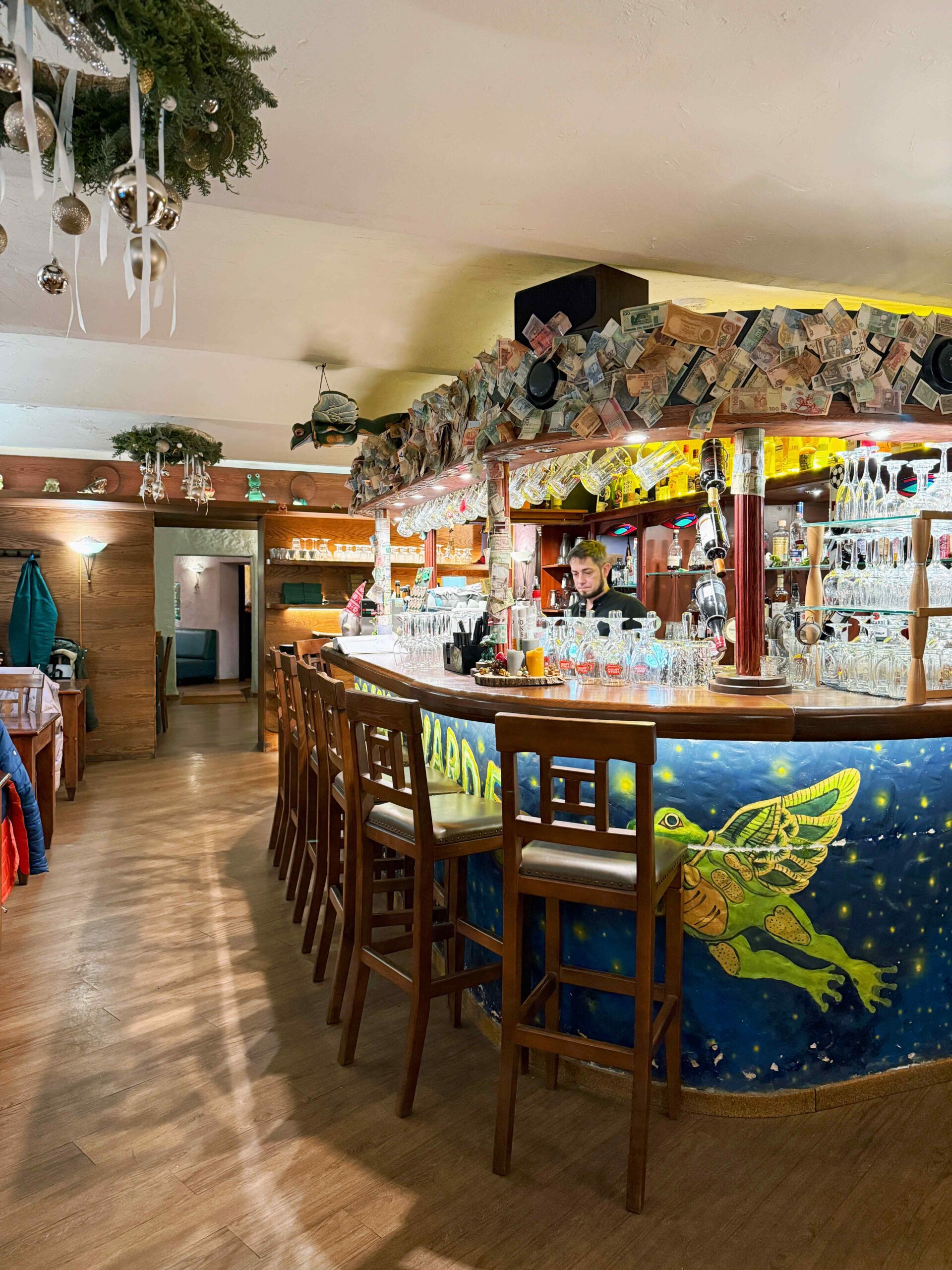 Joogimenüü pakub samuti laia valikut. Lidojošā vardes leiate ilmselt kõige ulatuslikuma kokteilikaardi, mille on koostanud kogenud baarmen. Kella 16.00-17.00 vahel on Happy hour, mille jooksul saate kokteili tellimisel teise tasuta.