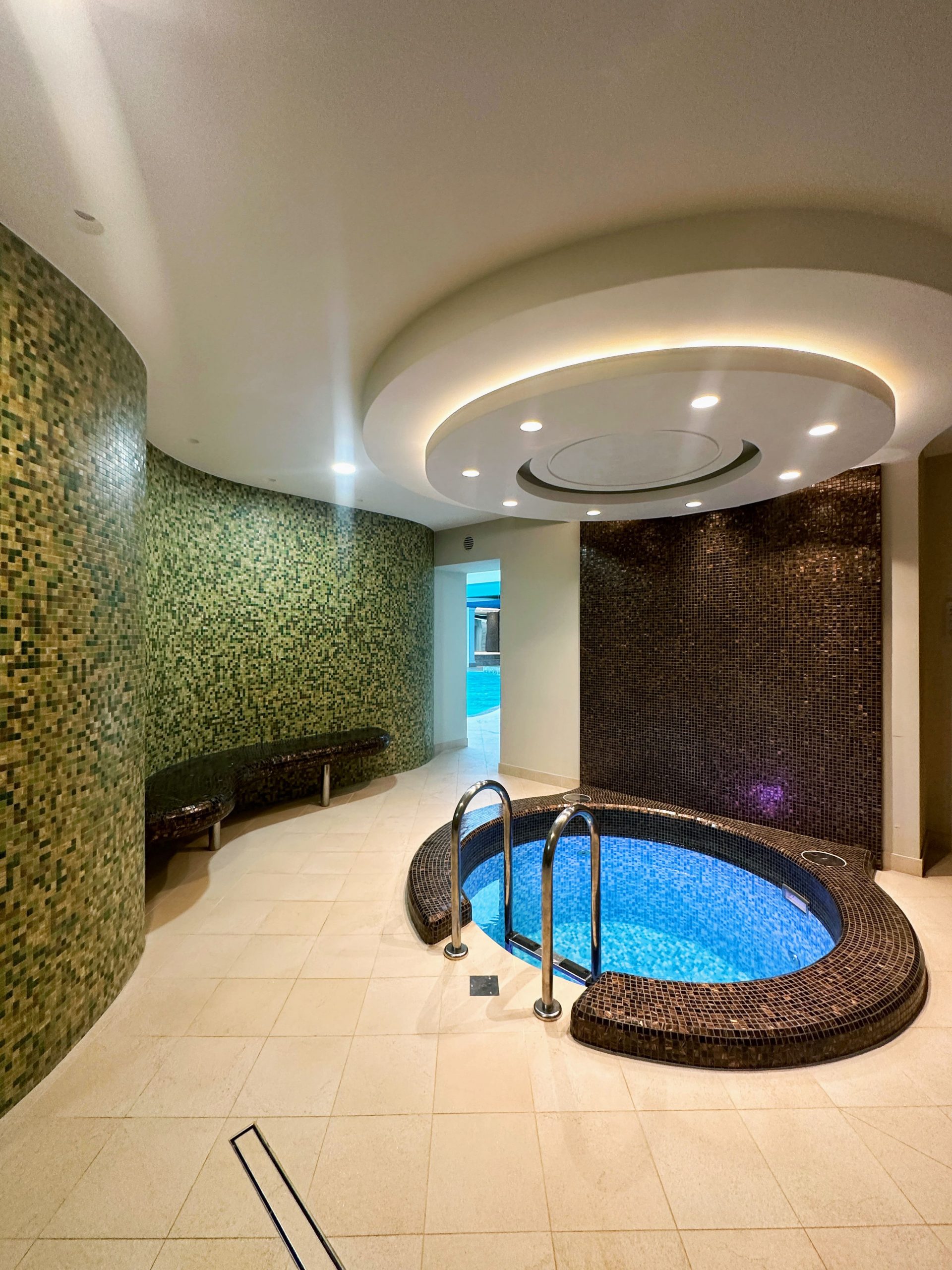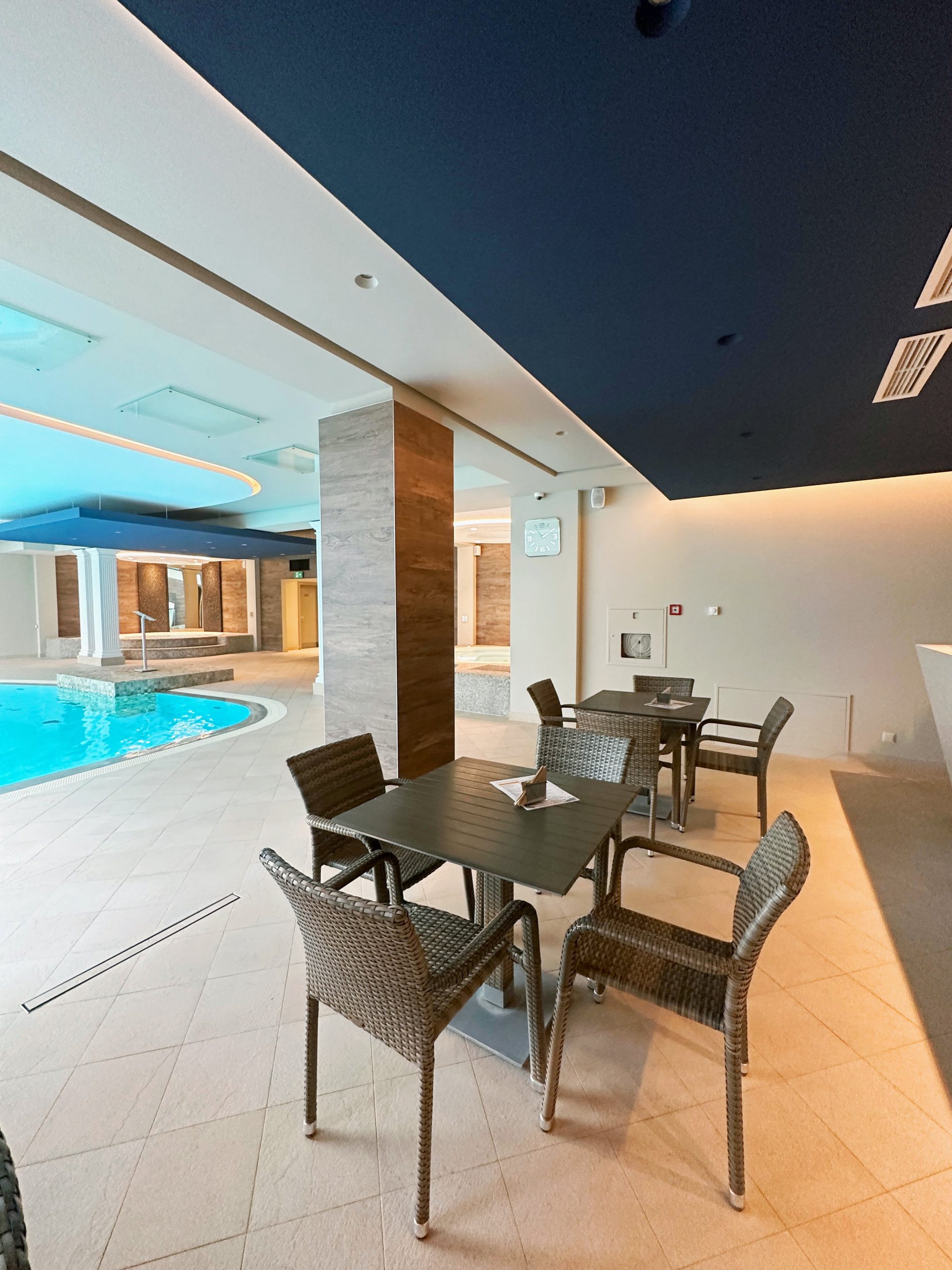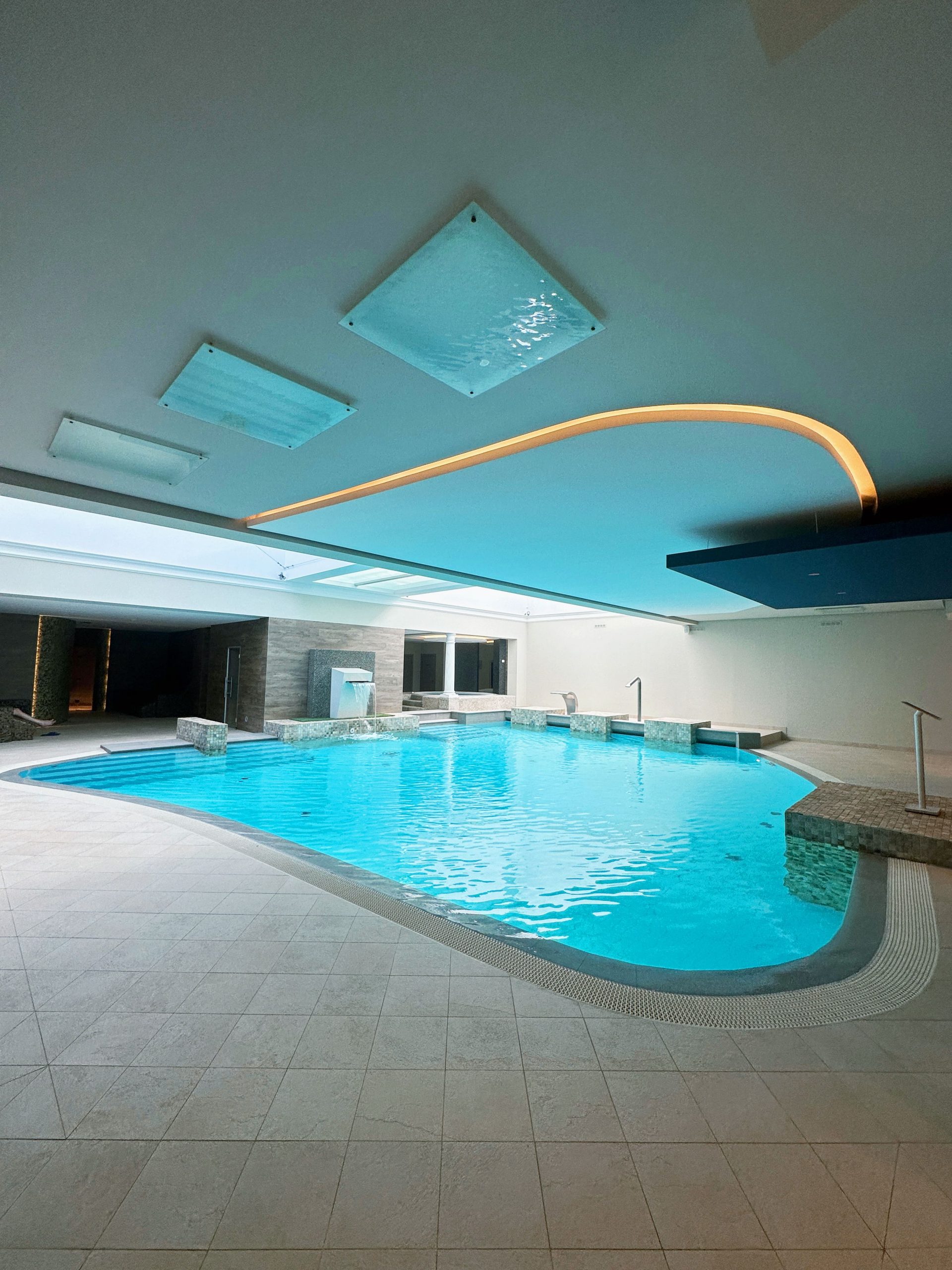 Keskuses on esteetiliselt kujundatud vee-puhkeala. Külalisi ootavad erineva intensiivsusega juga- ja kaskaadmassaažiga bassein, mullivann, samuti seitse tüüpi saunasid: saun, kaks aurusauna, Caldarium ja Sanarium, infrapuna- ja Türgi saunad. Basseini vesi desinfitseeritakse uuendusliku tehnoloogia abil, tänu millele jääb vesi kristallselgeks, ilma kahjulike desinfitseerimise kõrvalsaaduste ja kloorilõhnata.