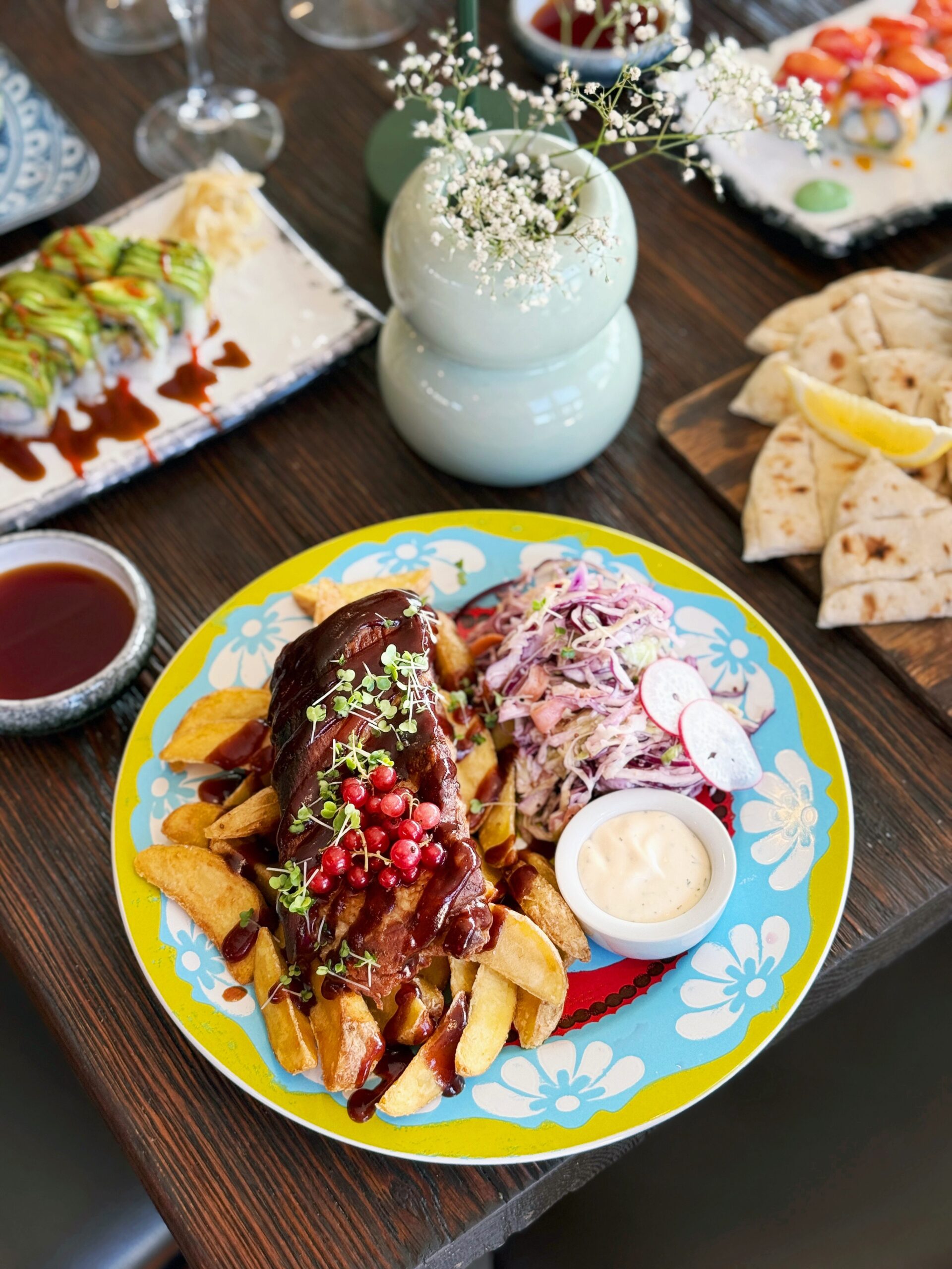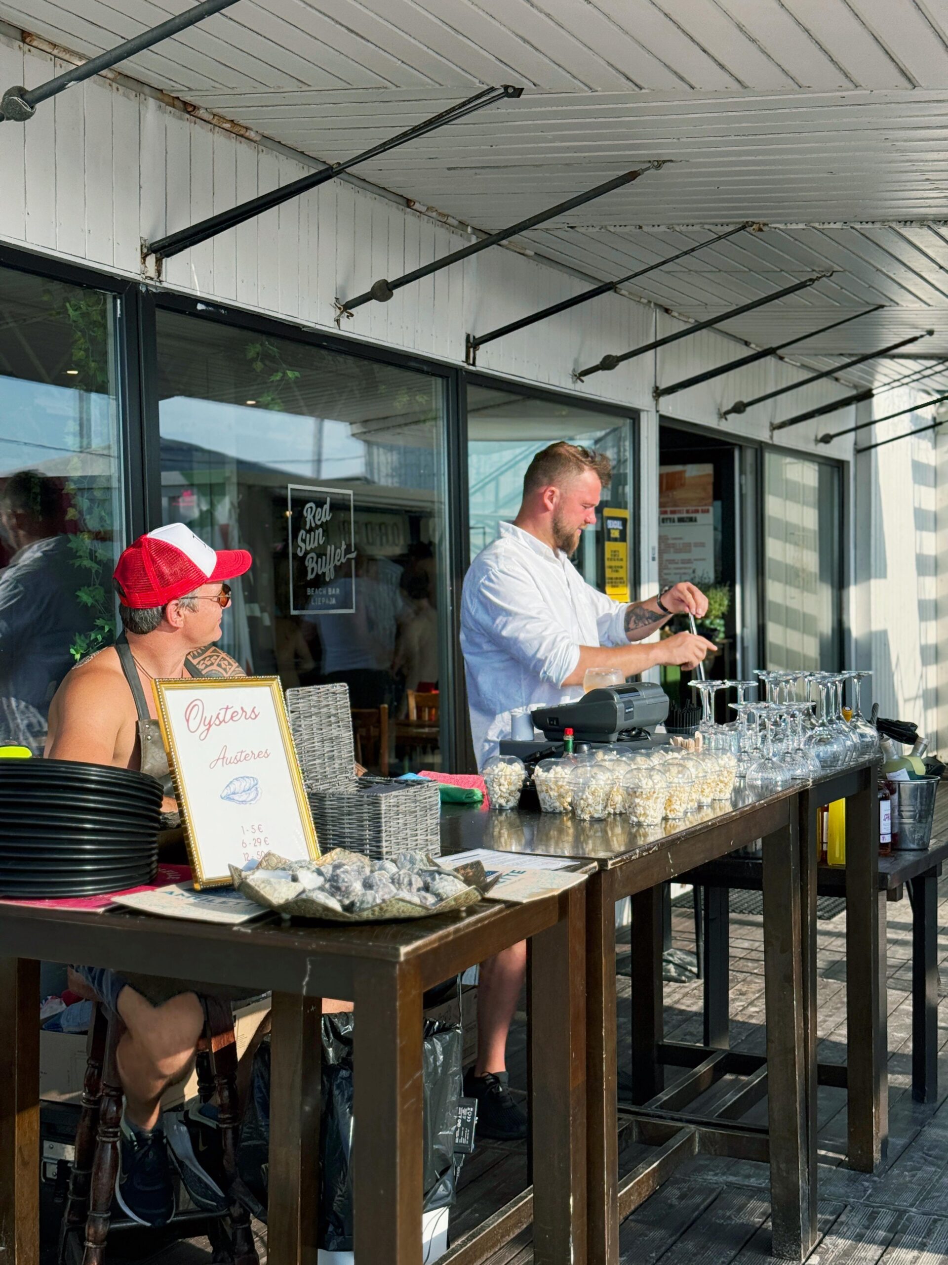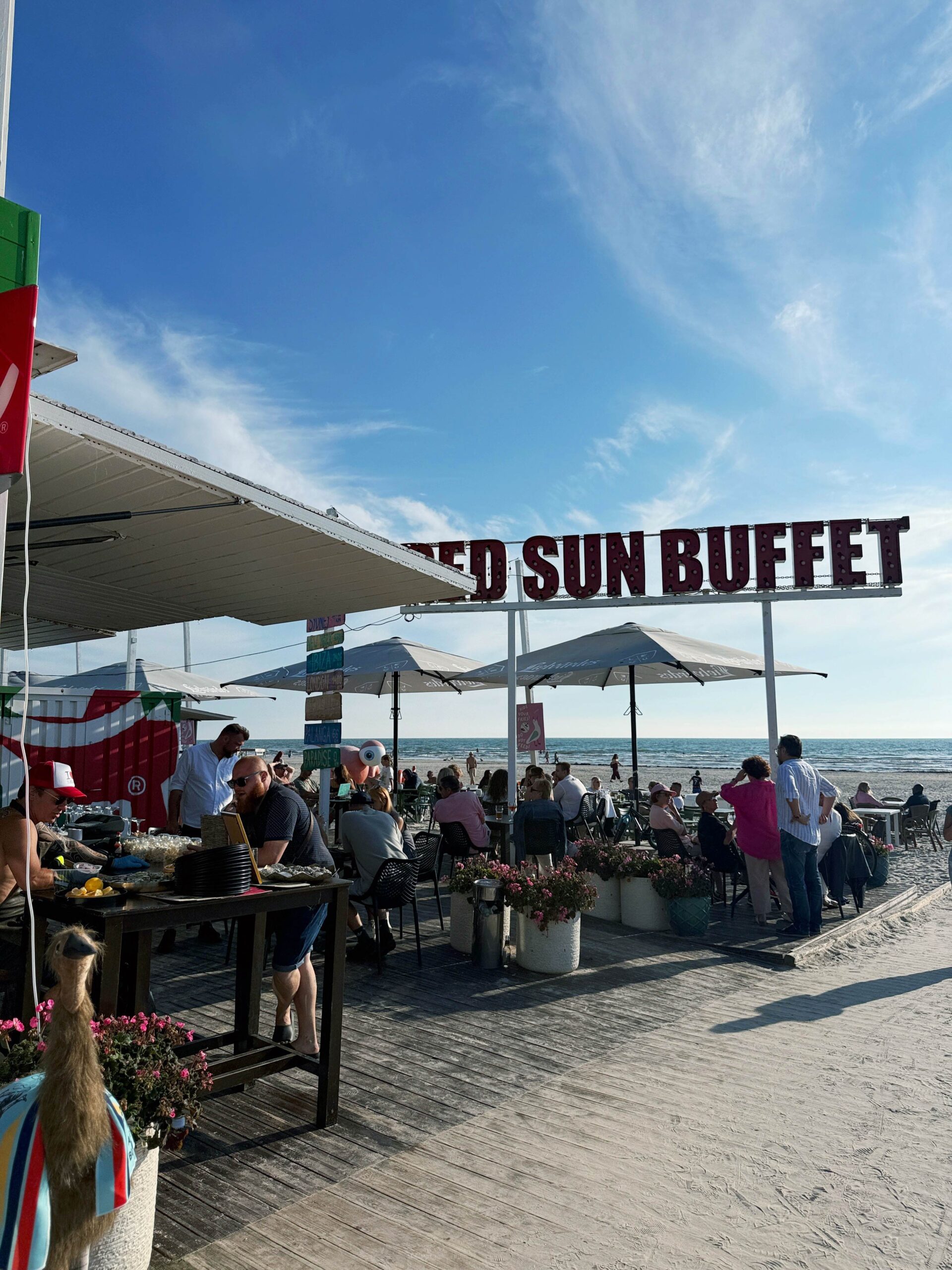 Red Sun Buffet pakub rahvusvahelist toitu – mahlased burgerid, grill liha, pasta, populaarsed salatid ja suupisted. See on koht, kuhu tasub minna igal põhjusel: nautima tassikest kohvi magustoiduga mugavas saalis, jooma sõpradega kokteili katuseterrassil, keskpäeval lõunat sööma või kutsuda armsam romantilisele õhtusöögile lainete kohina saatel. Toidud on valmistatud värskest hooaja kaubast, enamus sellest on kohalikelt tootjatelt.