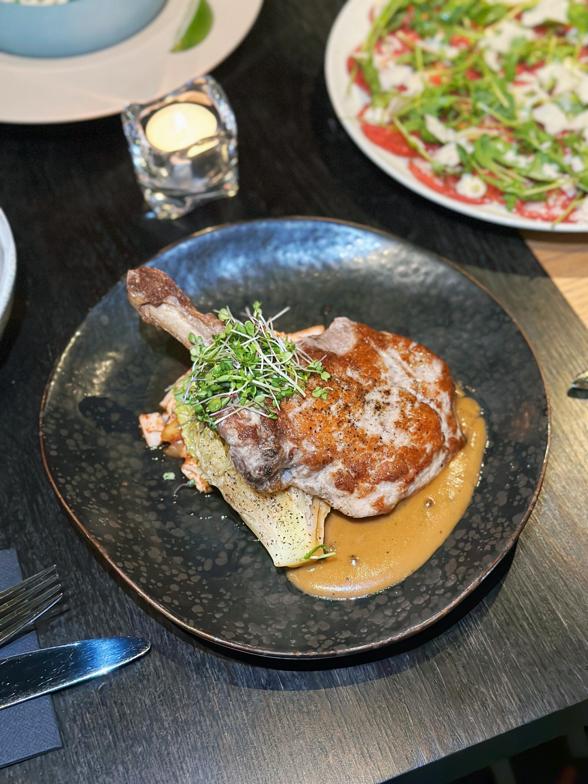 A la carte menüü pakub kaasaegset Euroopa kööki. Toitude valmistamisel kasutatakse värskeimat hooajalist toorainet, nii et külalised saavad igal hooajal midagi uut proovida. Koostisosad ostetakse kohalikelt põllumeestelt ja tootjatelt: nii saavutab restorani meeskond mitte ainult kõrgeima kvaliteedi, vaid toetab ka kohalikku tootmist.