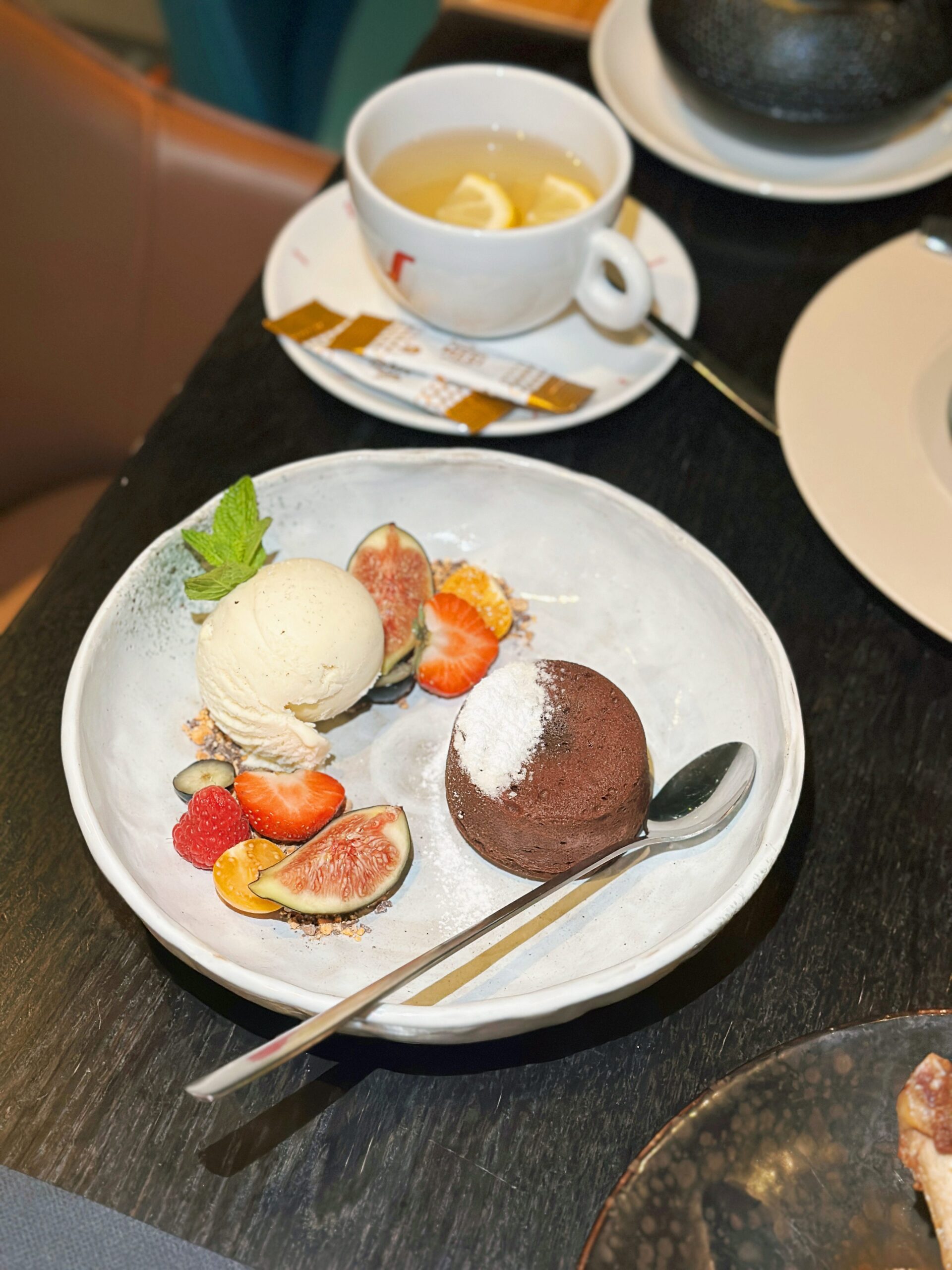 – šokolaadi fondant jäätise ja värskete marjadega.