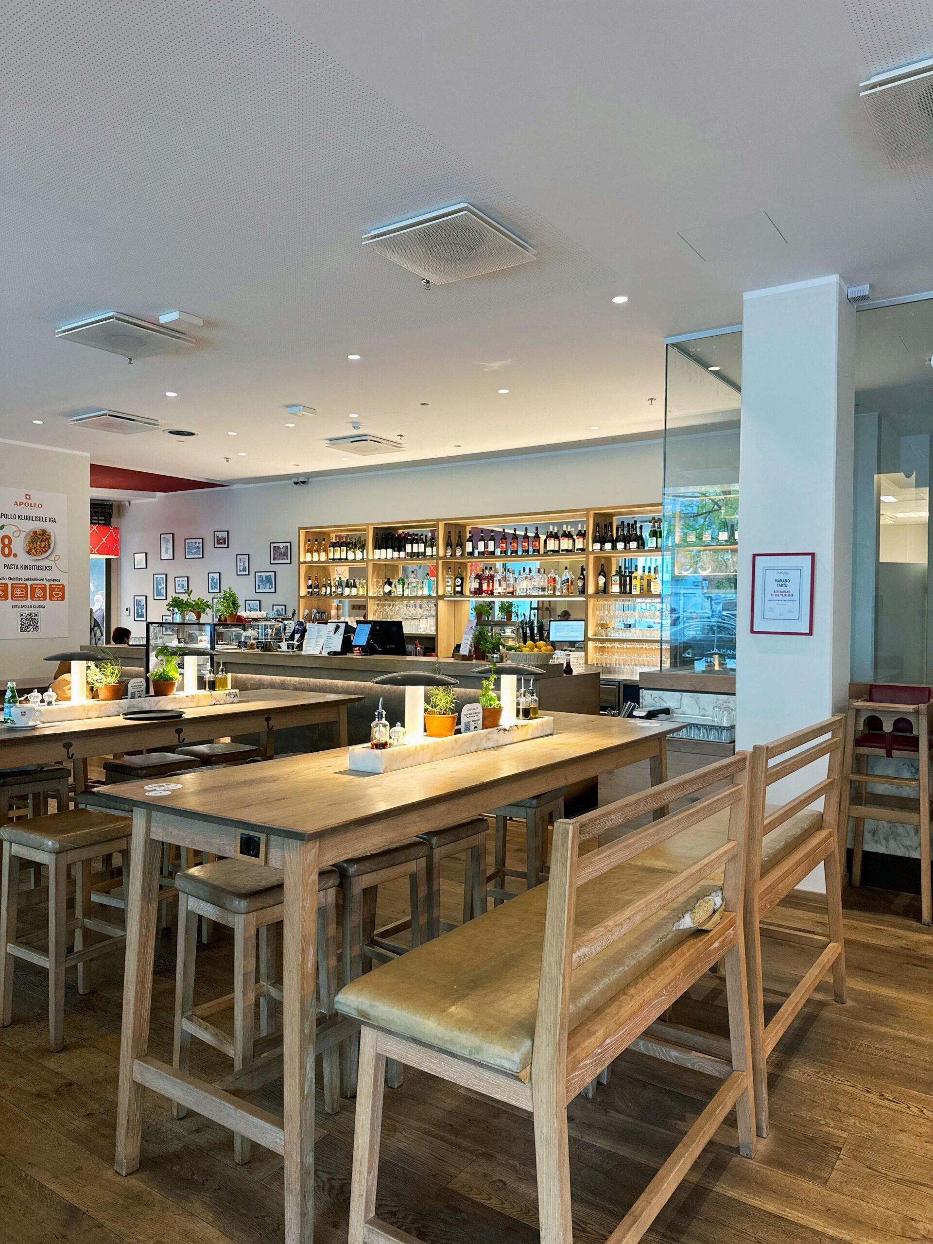 Interjööris on võtmedetailid, mis on ühised kõikidele restoranidele. Näiteks pikad tammepuidust lauad, mis loovad sõbraliku õhkkonna ja soodustab rahulikku einet heas seltskonnas.