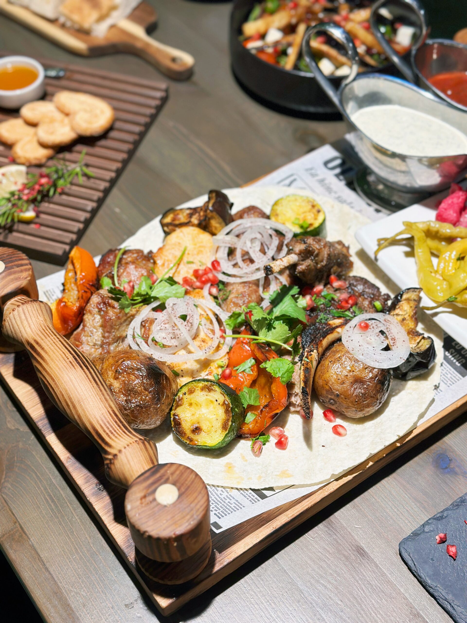 Grill dinner is a special offer consisting of shashlik, lula kebab, lamb chops, grilled vegetables and potatoes. The Kamikadze grill dinner can be ordered for two or four people, which makes it a perfect choice for both a date and a dinner with friends.