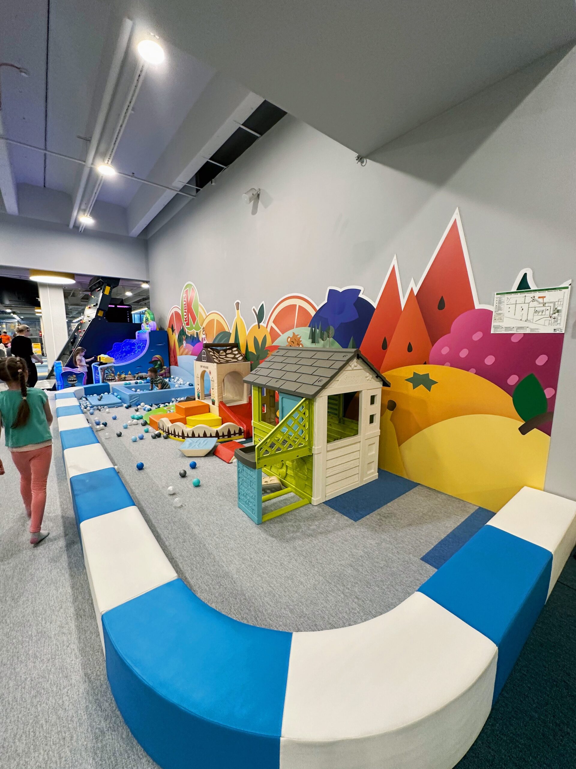 – Nuo 0 iki 3 metų amžiaus mažyliams skirtos uždaros zonos su šokinėjančiais gyvūnais, kalneliais ir lavinamaisiais skydeliais ant sienų;
