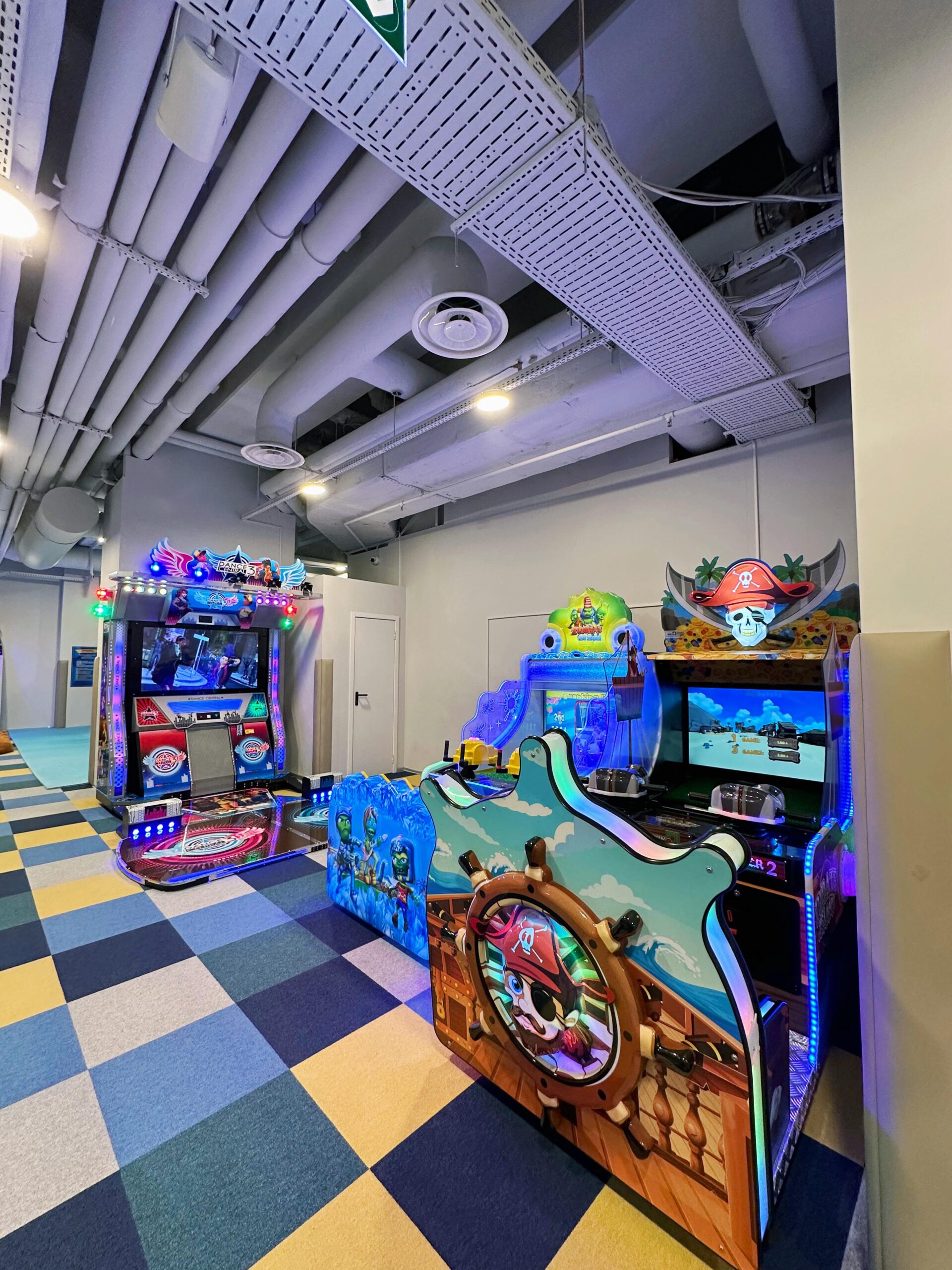 Tarp atrakcionų salėje yra įvairių interaktyvių žaidimų, arkadų, krepšinio, oro ritulio, magnetinių šachmatų, muzikinė siena, laipiojimo čiuožykla ir dar daugiau.