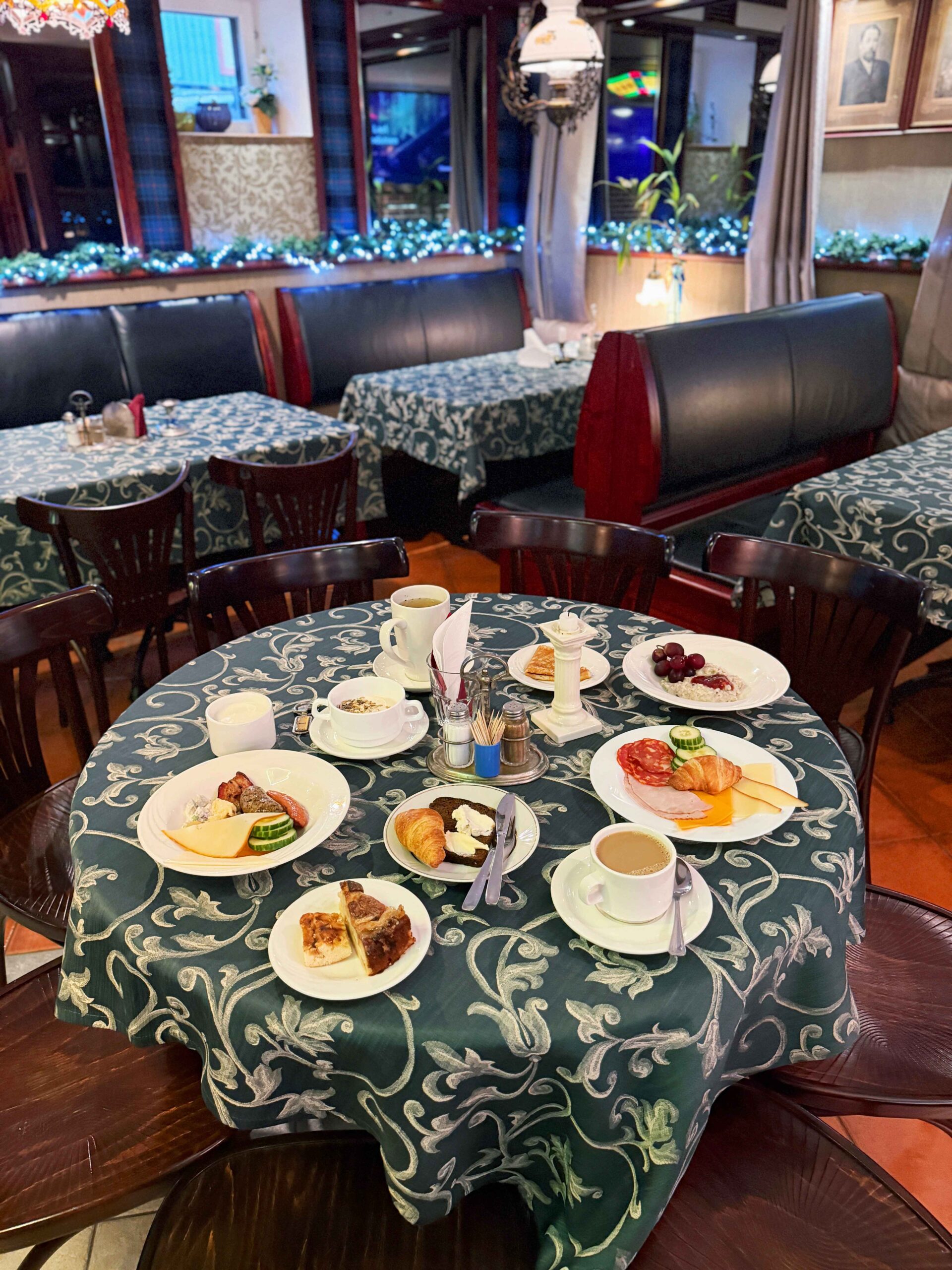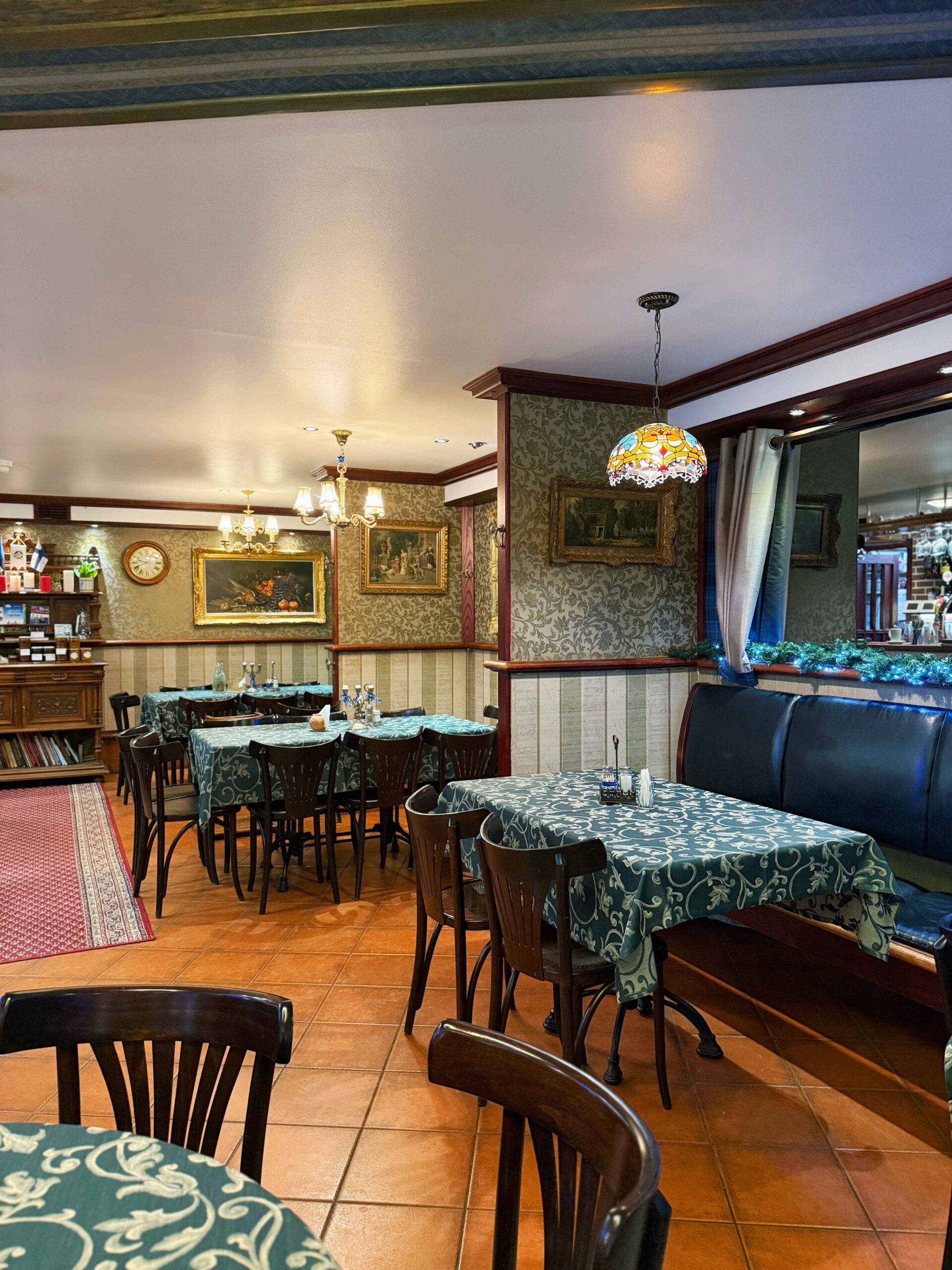 Rytais pirmame aukšte esančiame restorane patiekiami švediško stalo pusryčiai. Galite rinktis iš įvairių patiekalų: užkandžių, karštųjų ir šaltųjų patiekalų, šviežių pyragaičių ir gėrimų. Kiekvieną trečiadienį ir penktadienį nuo 20.00 val. vyksta karaokės vakarai. Vasarą jie prasideda terasoje ir palaipsniui persikelia į barą. Dainas galite rinktis iš gausaus grojaraščio, į kurį įtrauktos įvairių šalių atlikėjų dainos, įskaitant Estijos, Anglijos ir Suomijos atlikėjų.