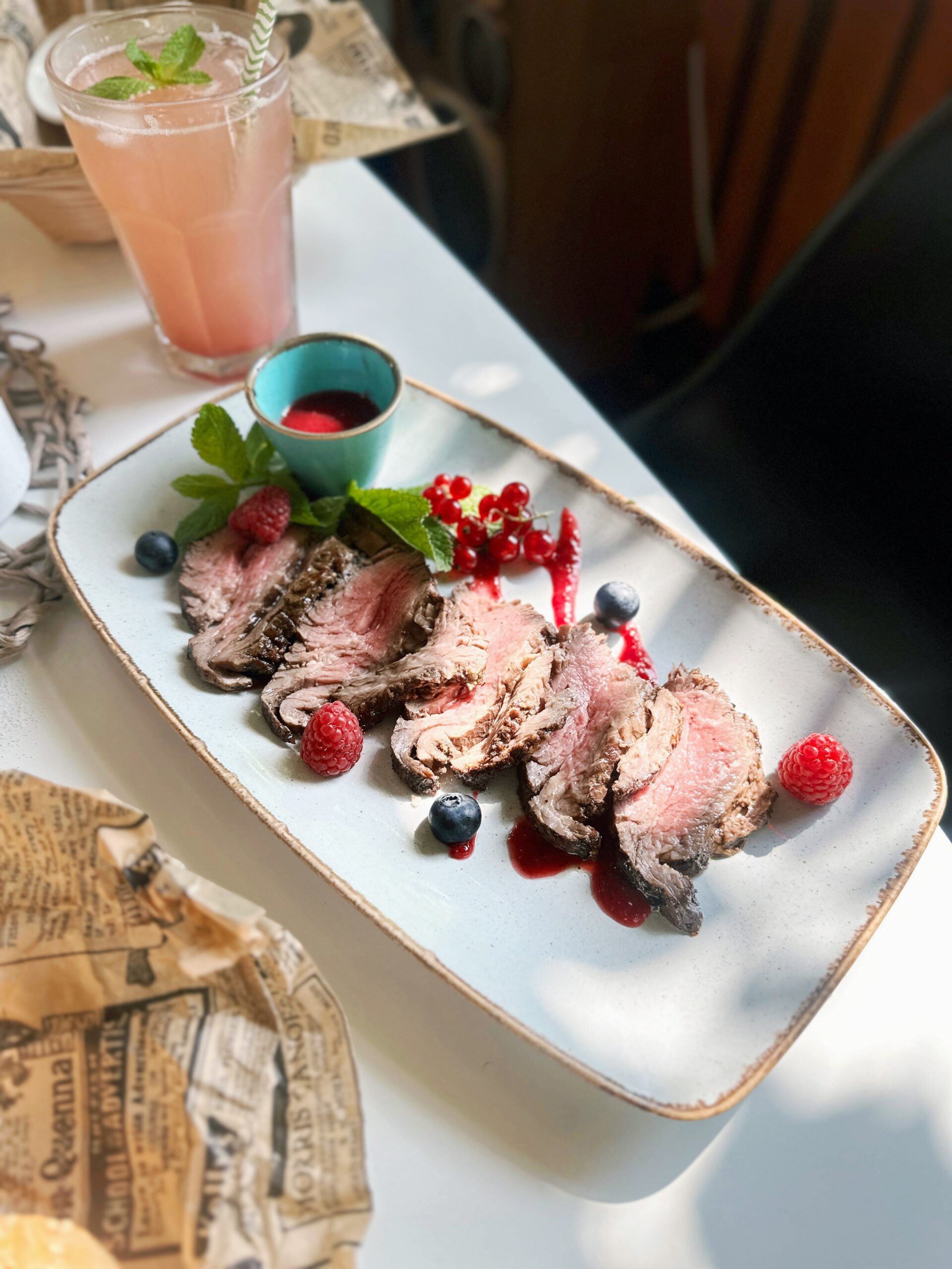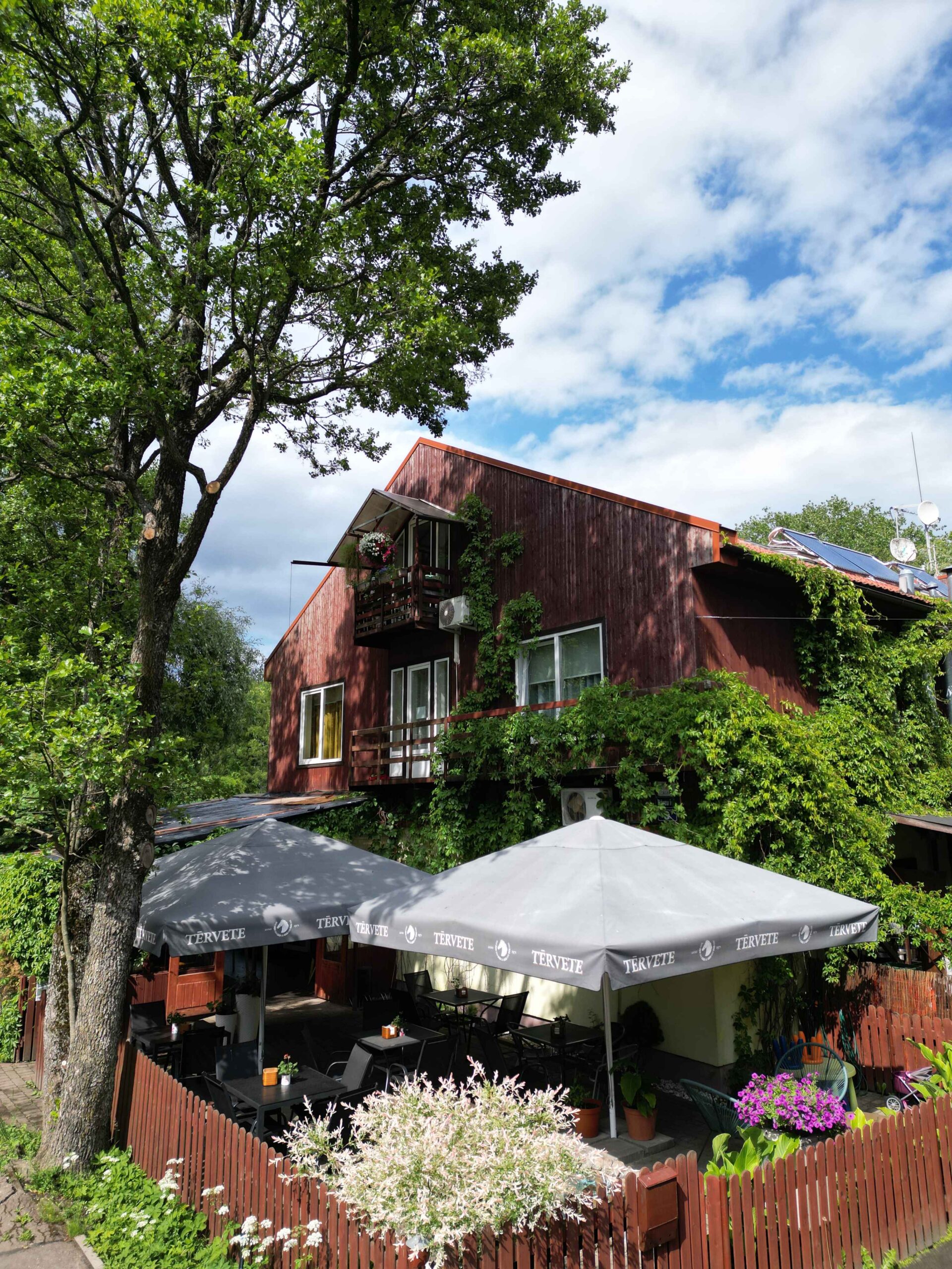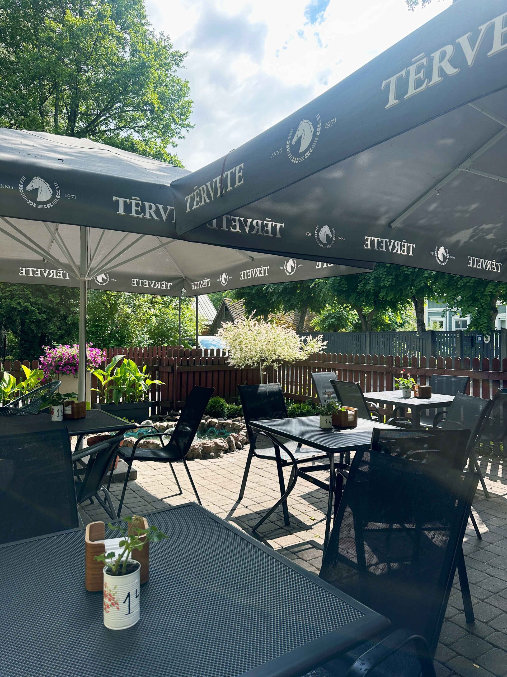 Kavinė bendradarbiauja su vietos gamintojais. Pavyzdžiui, čia galima įsigyti natūralių „Zeltabolītis“ obuolių sulčių, pagamintų iš latviškų obuolių. Meniu taip pat yra kitų vietinės gamybos gėrimų, tokių kaip alus, gira ir Tērvetes sidras.