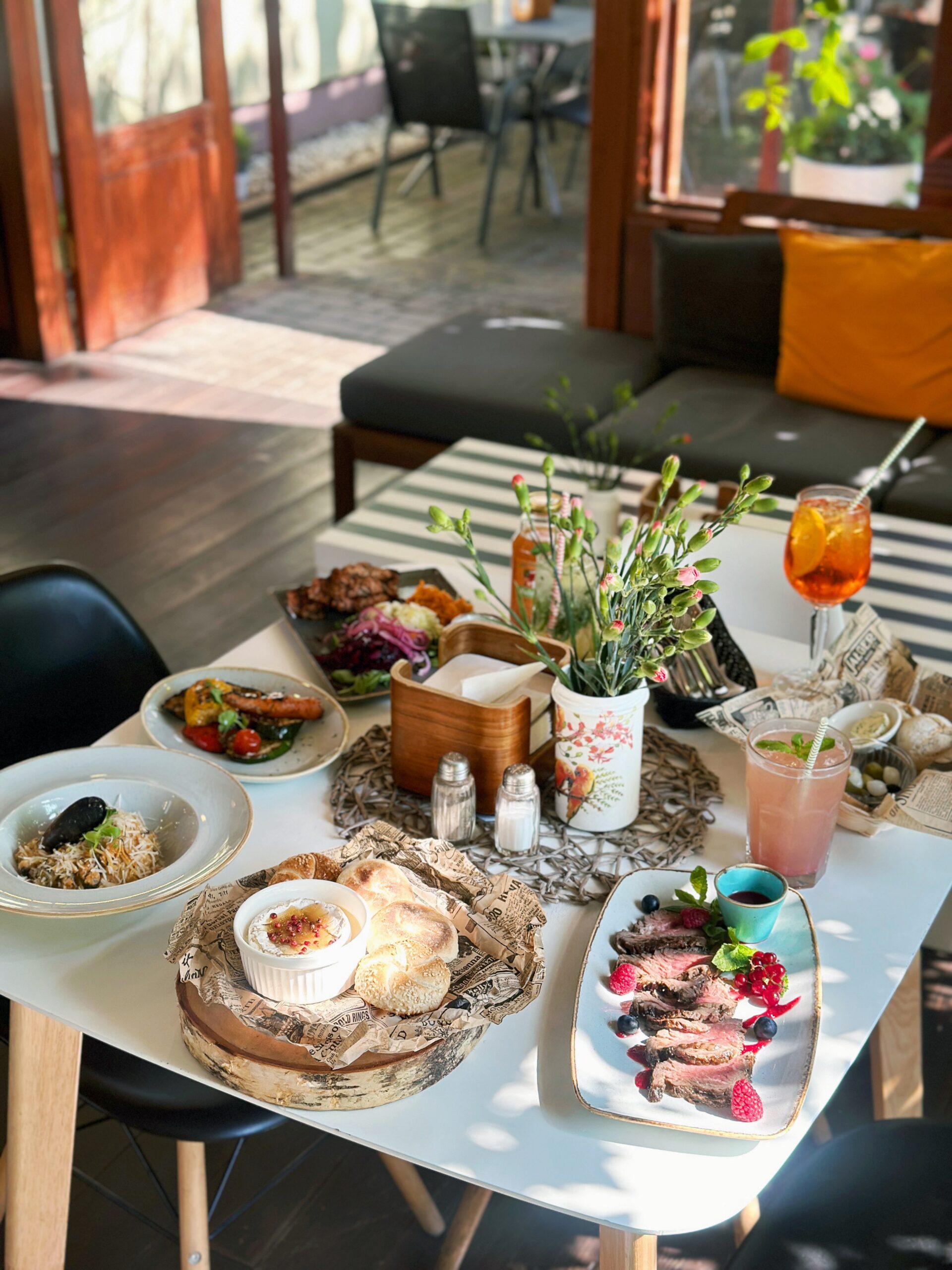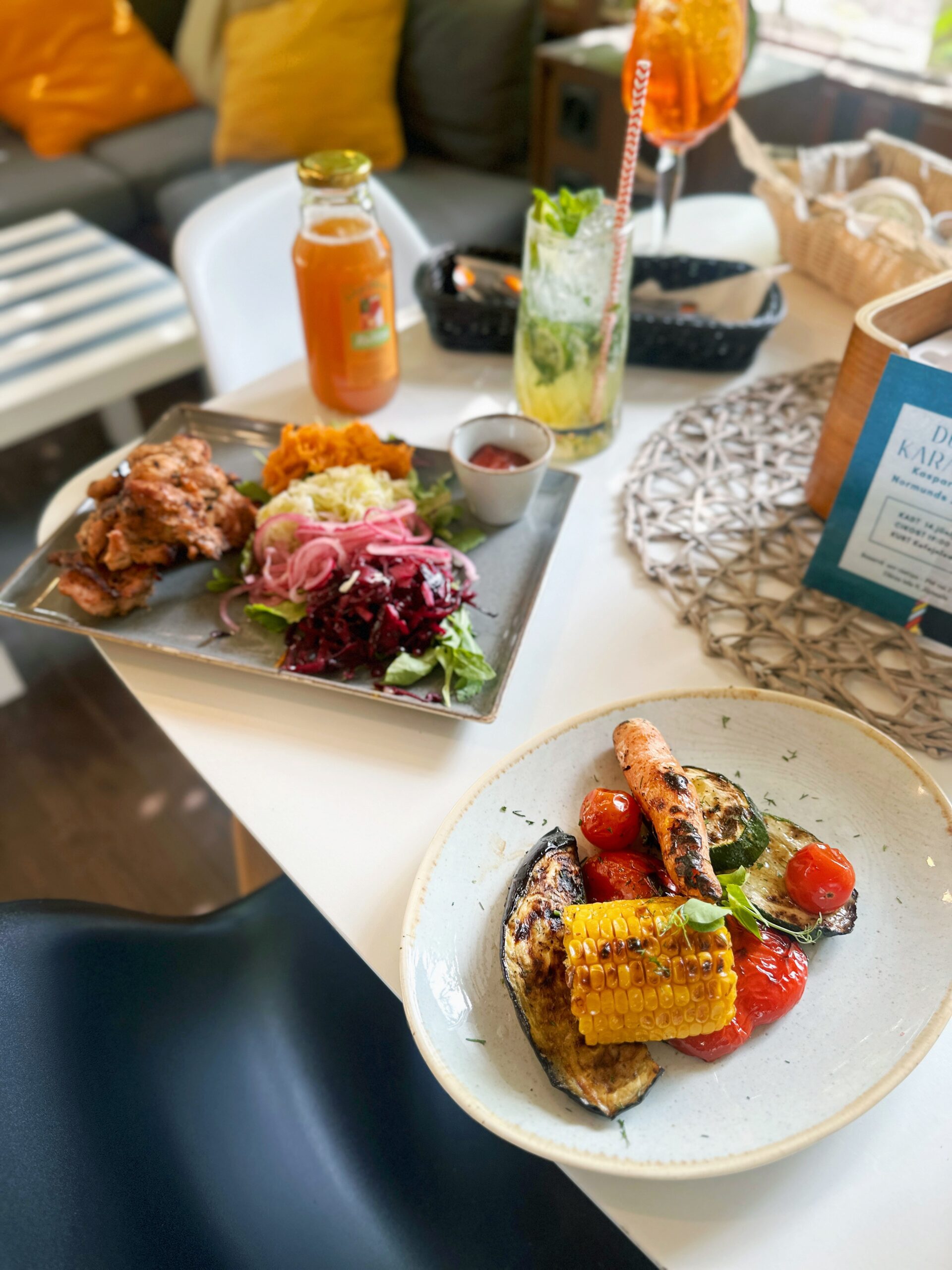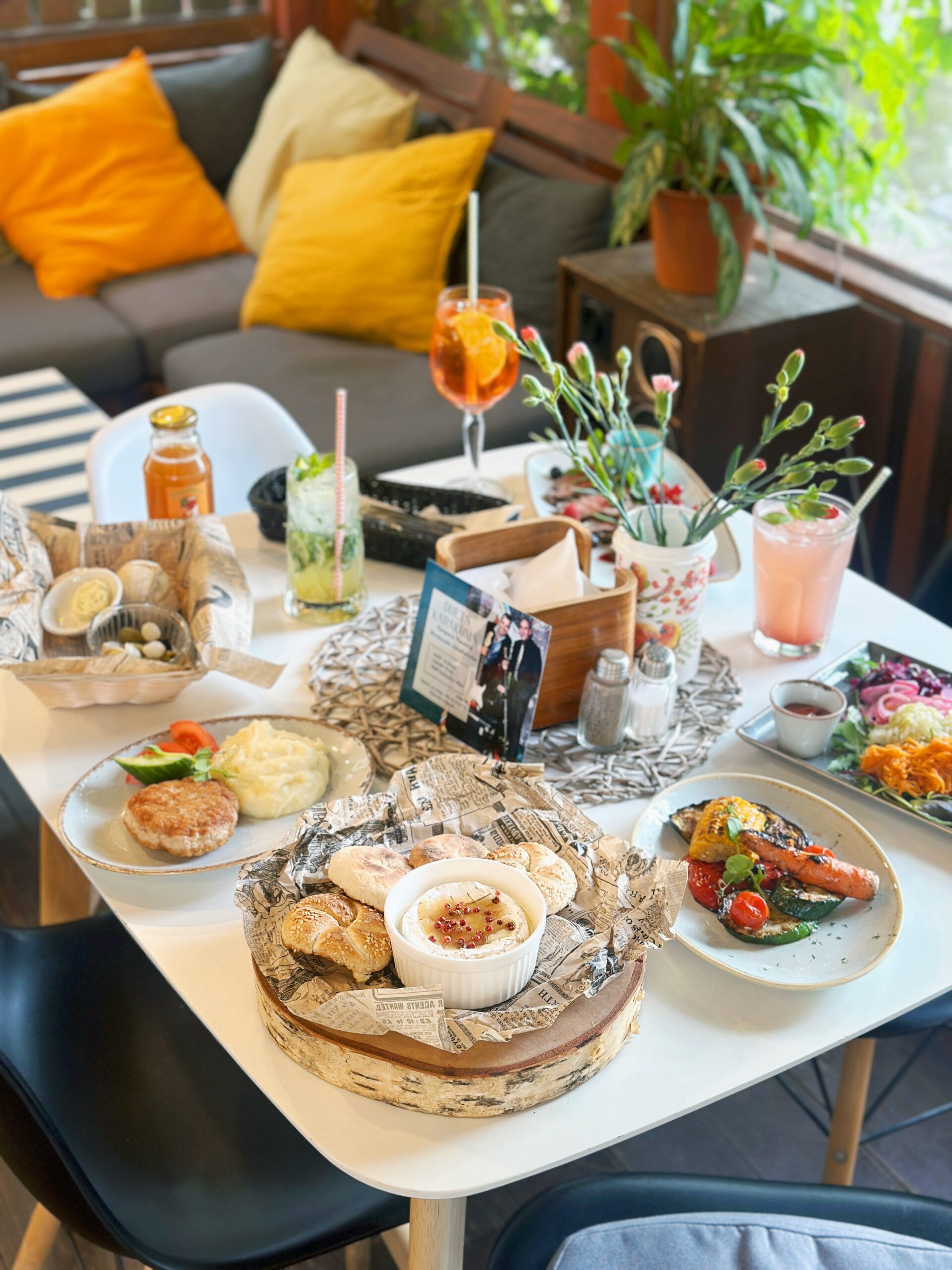 Meniu siūlomas didelis europietiškos virtuvės pasirinkimas: užkandžiai, salotos, sriubos, žuvies, mėsos ir vegetariški patiekalai, yra vaikiškas meniu. Visas maistas gaminamas vietoje iš kruopščiai atrinktų šviežių ingredientų, o porcijos labai dosnios. Kavinės svečiai ypač giria šašlykus, mėsainius ir desertus – panakotą ir Pavlovos pyragą.