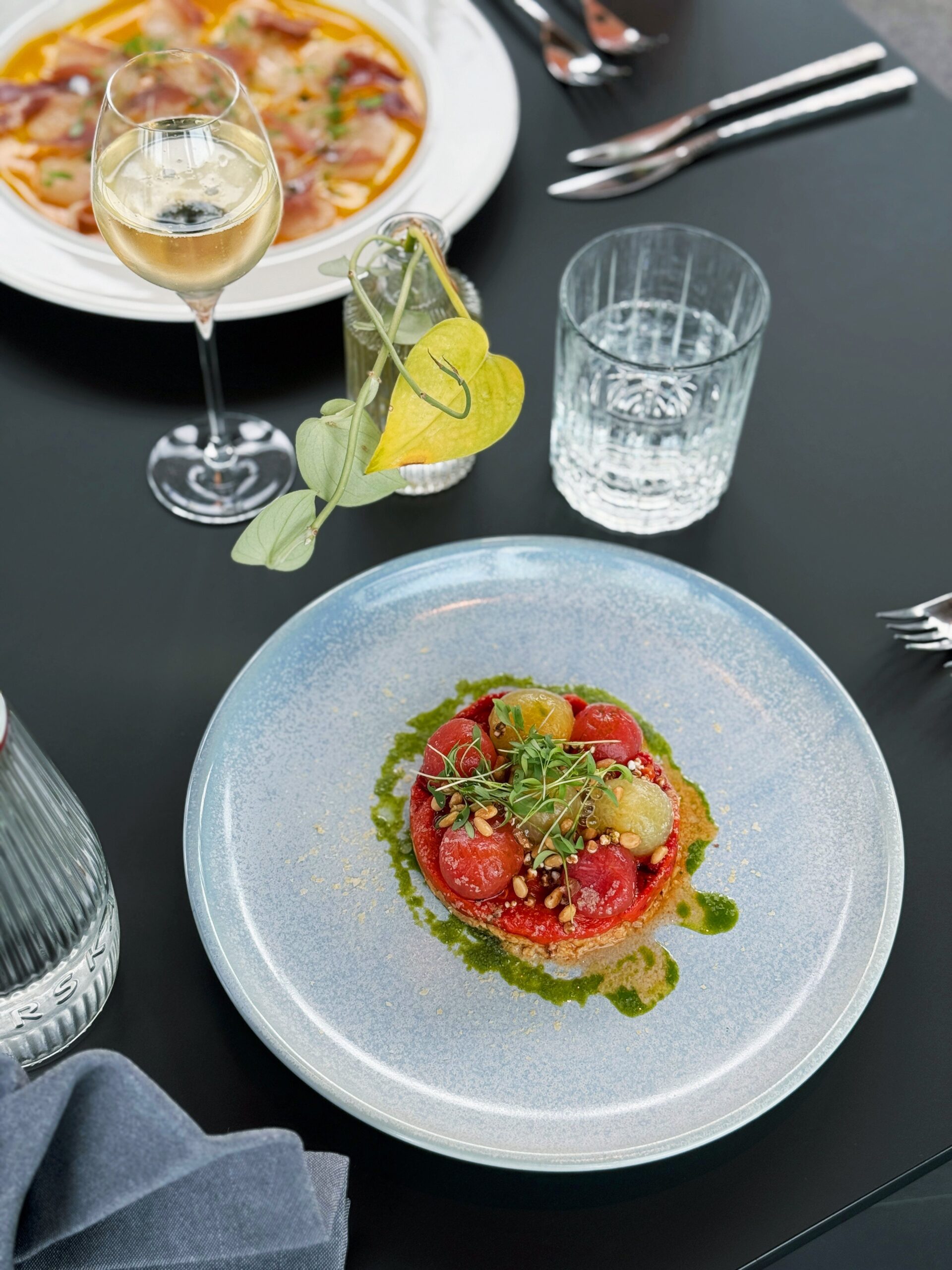 Meniu siūlo europietiškos virtuvės patiekalus ir atnaujinamas kiekvieną sezoną. Taigi restoranas sugeba nuolat nustebinti net ir nuolatinius svečius. Paruošimui naudojami vietinių gamintojų ingredientai. Kiekvienas patiekalas yra kruopštaus šefo ir komandos darbo rezultatas, siekiant suteikti svečiams naujos patirties ir galimybę išbandyti naujus skonių ir tekstūrų derinius. Maistas ne tik skanus, bet ir estetiškas: kiekvienas patiekalas patiekiamas ant gražių indų ir dekoruotas skiriant didelį dėmesį detalėms.