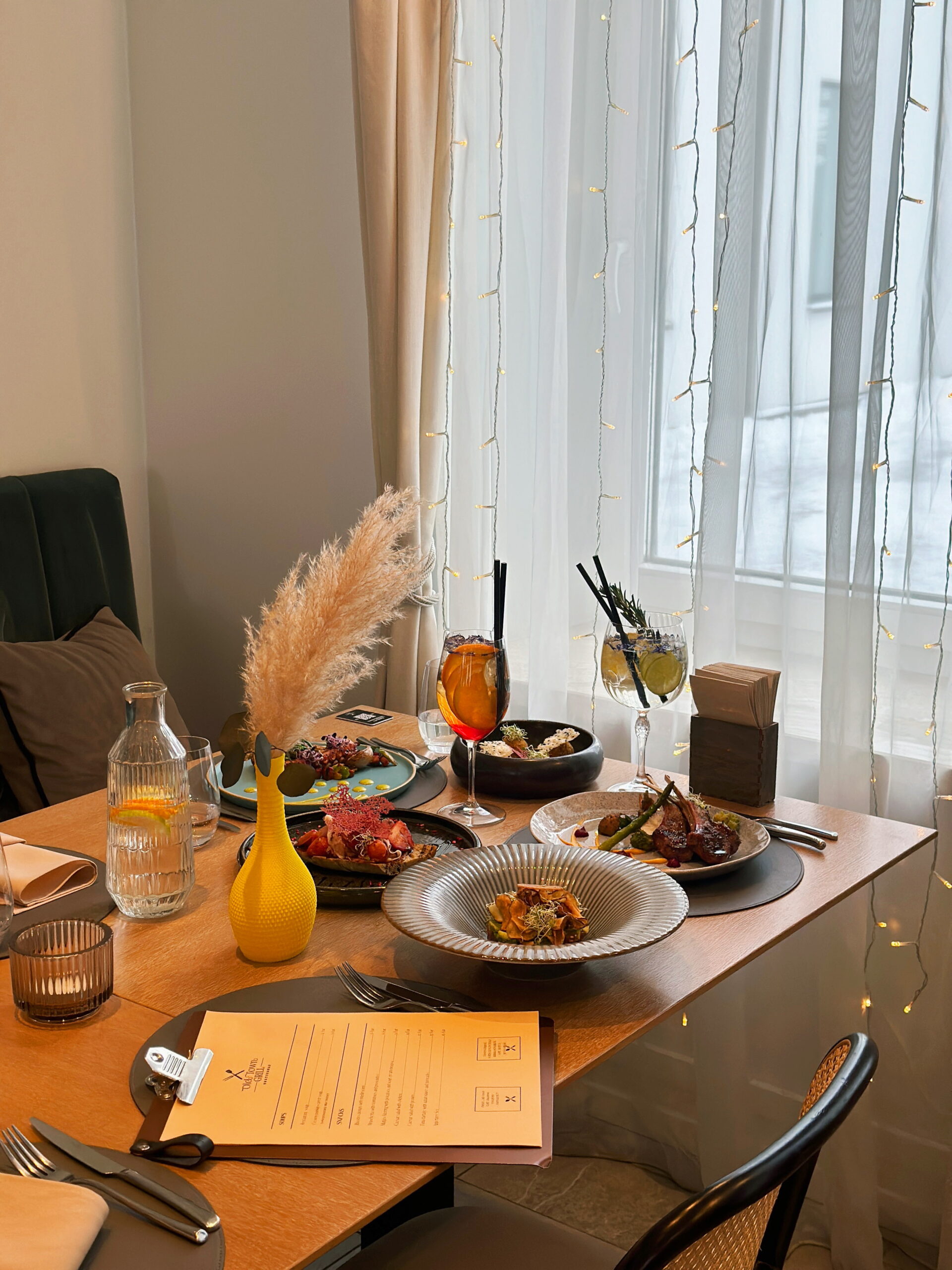 Sezoninis meniu siūlo platų europietiškų patiekalų pasirinkimą, įskaitant sriubas, užkandžius, pagrindinius patiekalus ir desertus. Apetitą žadinantys patiekalai patiekiami ant gražių lėkščių – tikras malonumas ne tik skrandžiui, bet ir akims. Gėrimų sąrašas taip pat džiugina dideliu tiek nealkoholinių, tiek alkoholinių gėrimų bei kokteilių pasirinkimu. Meniu yra daug ant grotelių keptų patiekalų, kurių kepimą vasarą galima žiūrėti atviroje vasaros virtuvėje. Savaitgaliais yra specialus šėfo pasiūlymas.