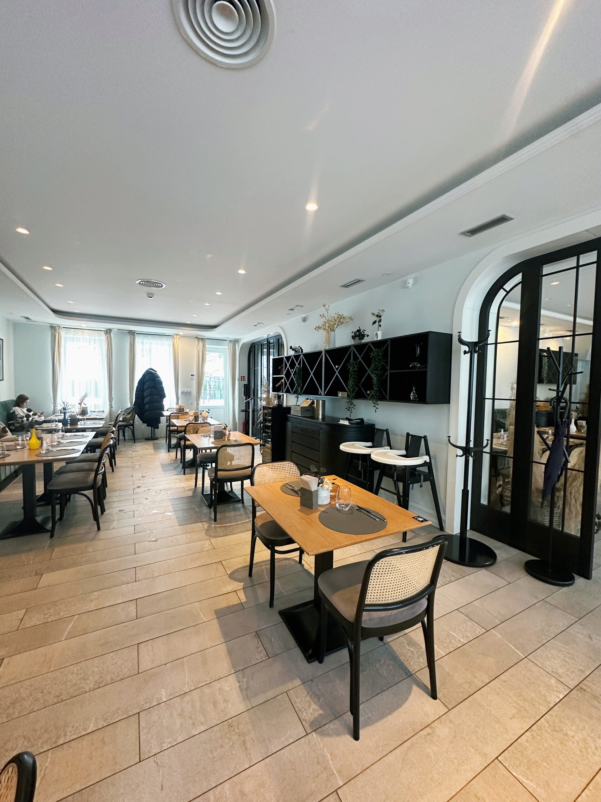Restorano salė dekoruota moderniu minimalistiniu stiliumi, su minkštomis sofomis, augalais ir dekoratyviniais elementais, todėl čia labai jauku. Vasarą kieme yra erdvi terasa su tentais. Svečiai su vaikais visada laukiami restorane: salėje yra aukštos kėdutės maitinimui, o lauke įrengtas vaikų kampelis su smėlio dėže ir žaislų nameliu.