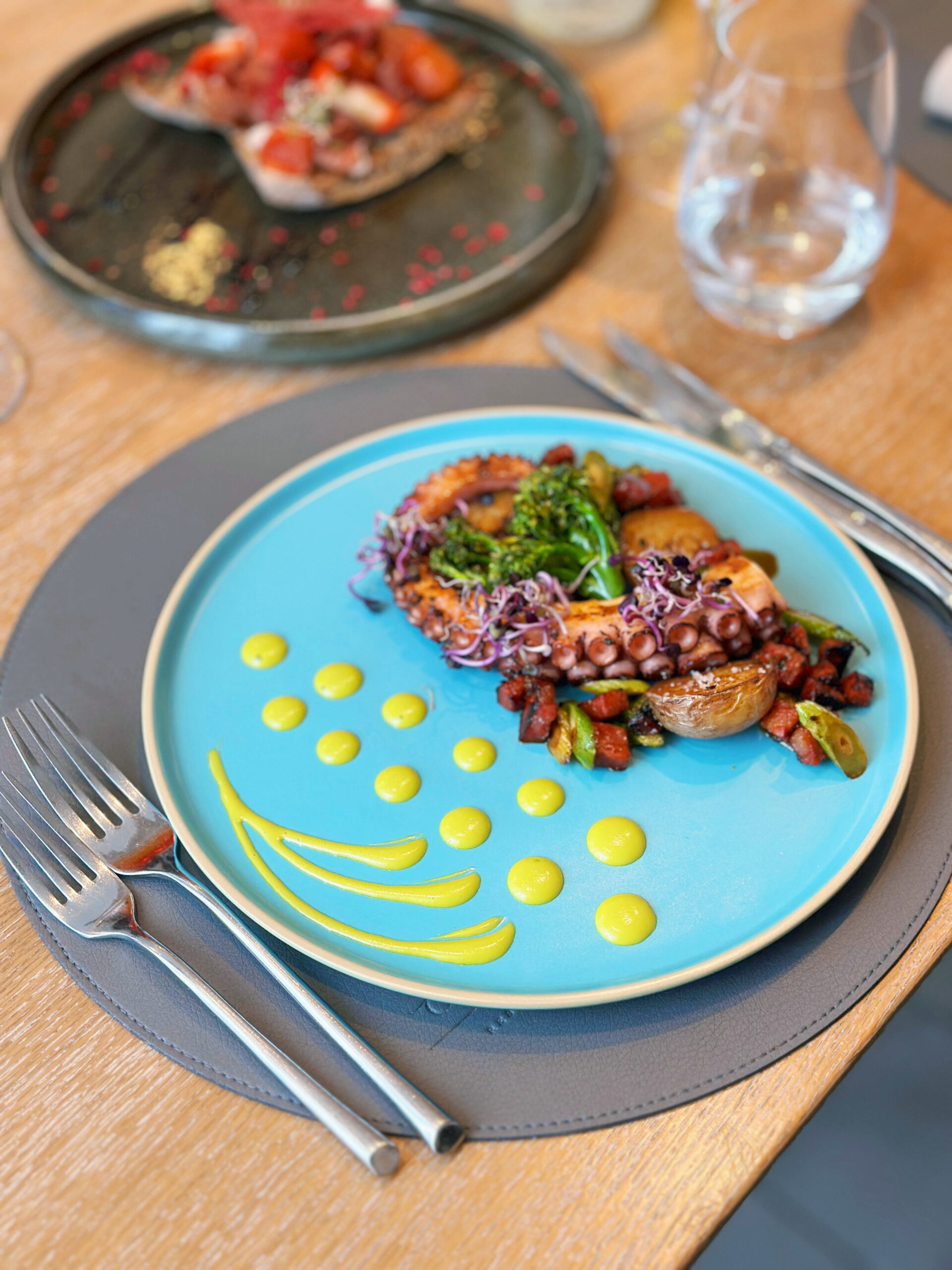 – aštuonkojai su bulvėmis, brokoliais ir chorizo,
