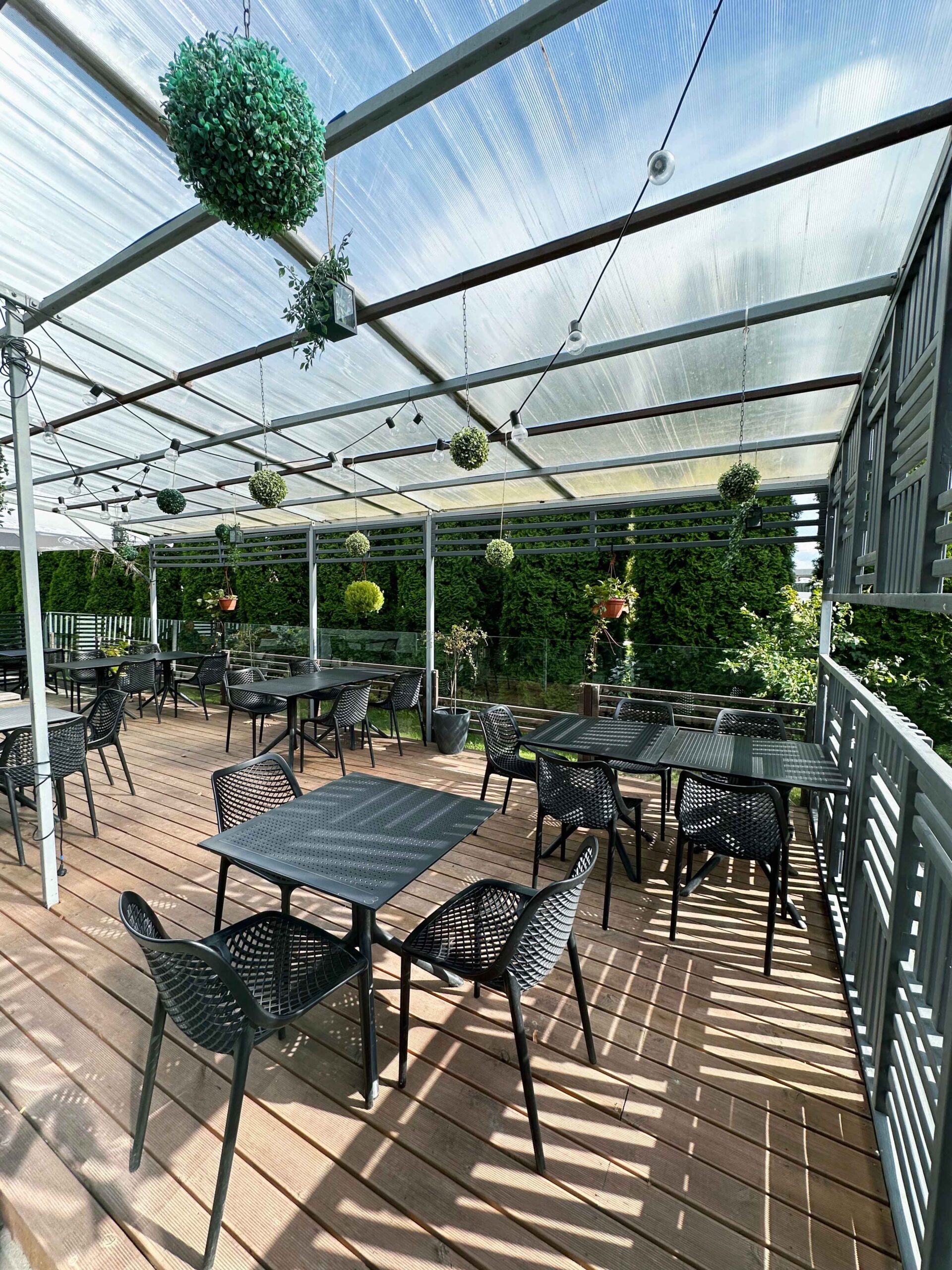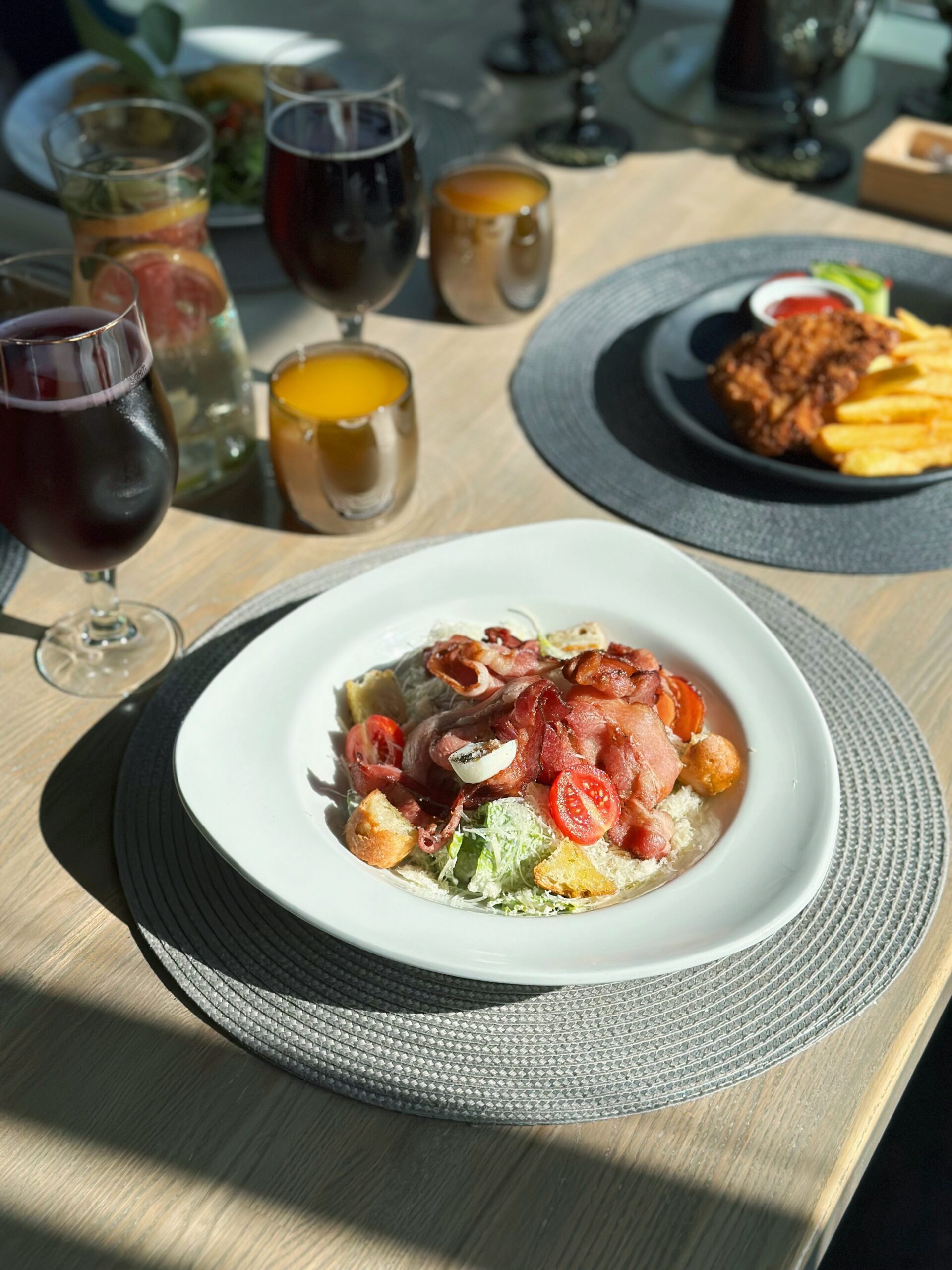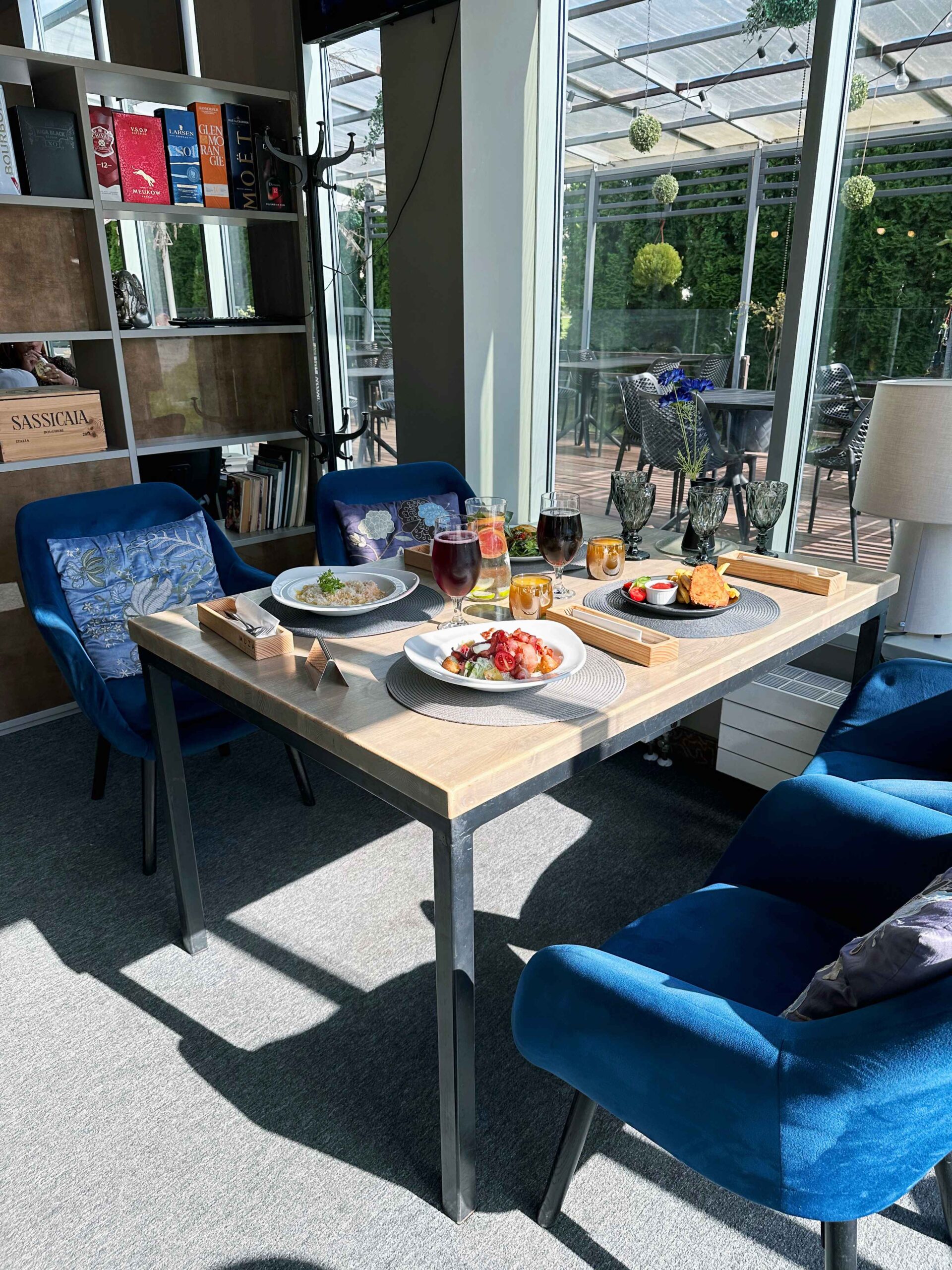 Restoranas “Mūza” yra pirmame viešbučio aukšte. Gražioje jaukioje salėje įrengta vaikų erdvė su žaislais – mažieji svečiai nenuobodžiaus laukdami užsakymo. Šiltuoju metų laiku veikia terasa.