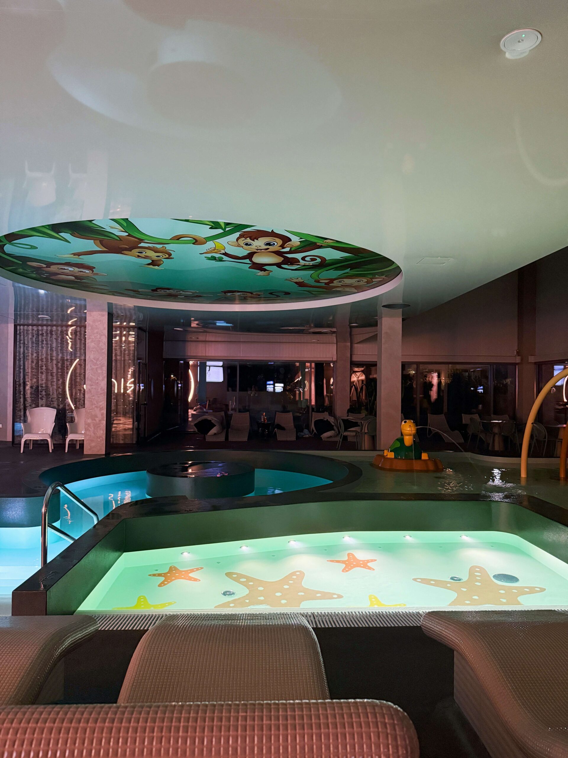 SPA centras žavi savo erdvumu ir šviesos kiekiu. Malonus raminančių spalvų dizainas leidžia atsipalaiduoti. Aplink baseinus yra gultai ir specialios poilsio vietos.