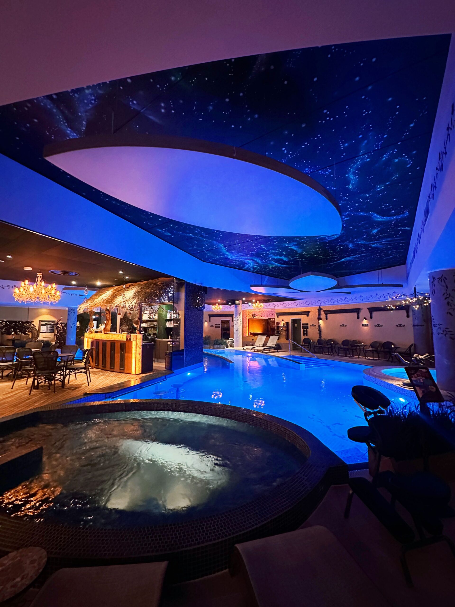 Abas zonas ir skaisti noformētas. No 25.03. bērnu zona tiks slēgta remontdarbu veikšanai. Tā būs atkal atvērta 2024. gada oktobrī. Pēc renovācijas šeit būs trīs ūdens slidkalniņi un valdīs džungļu atmosfēra. Pieaugušo zona izceļas ar īpašu atmosfēru, kuru rada pieklusināta, krāsu mainoša gaisma.