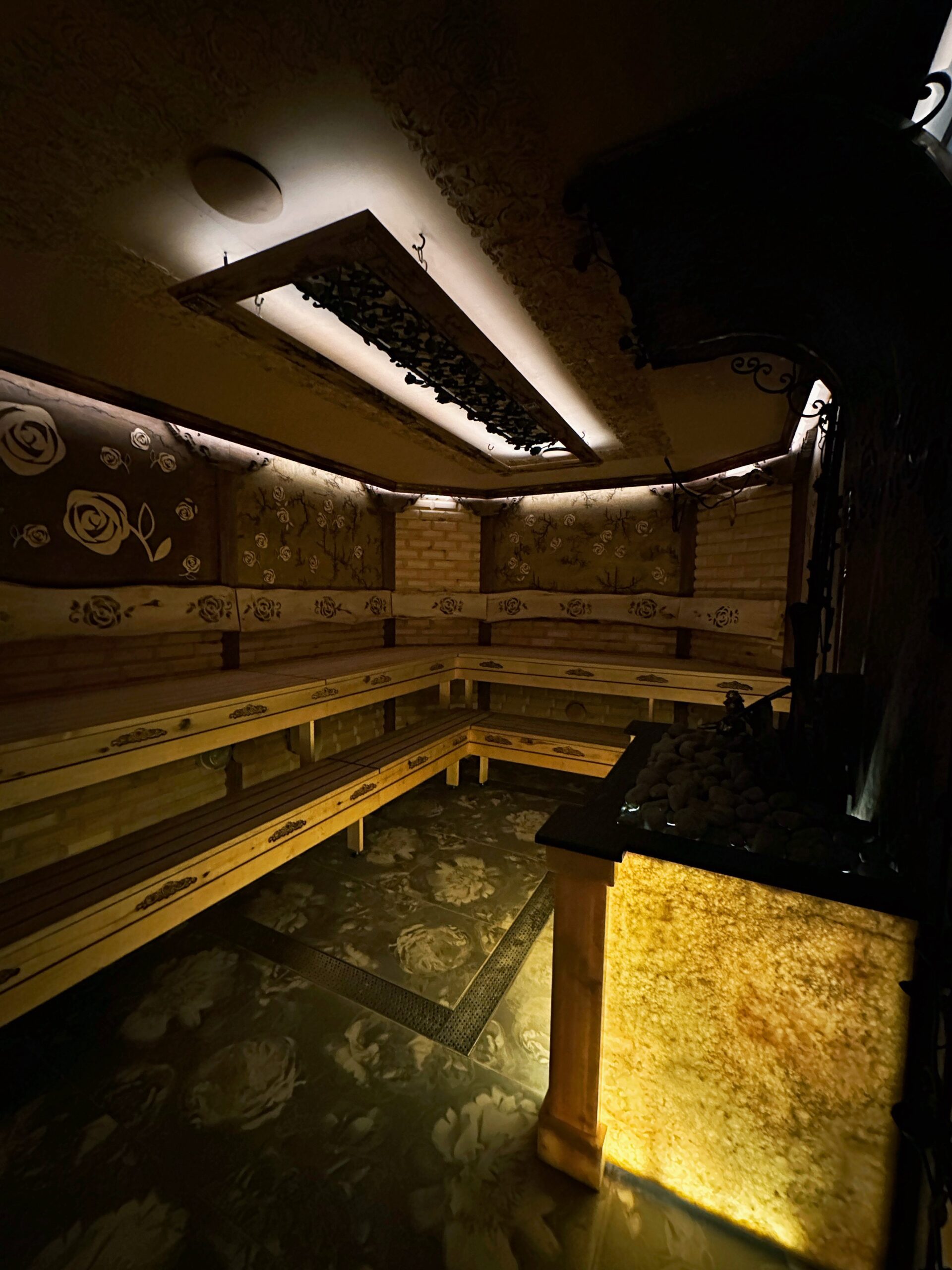 Katrā zonā var atrast vairāku veidu saunas. Piemēram, jūs gaida ne tikai tradicionālā pirts ar slotām un sāls pirts, bet arī, piemēram, japāņu geizers. Tā ir vanna ar īpašu minerālūdeni, kas dekorēta tradicionālā japāņu karstā avota stilā. Ir pieejama arī dubļu vanna, kurā varat iegremdēties ārstnieciskās dūņās, kas labvēlīgi ietekmē visu ķermeni.