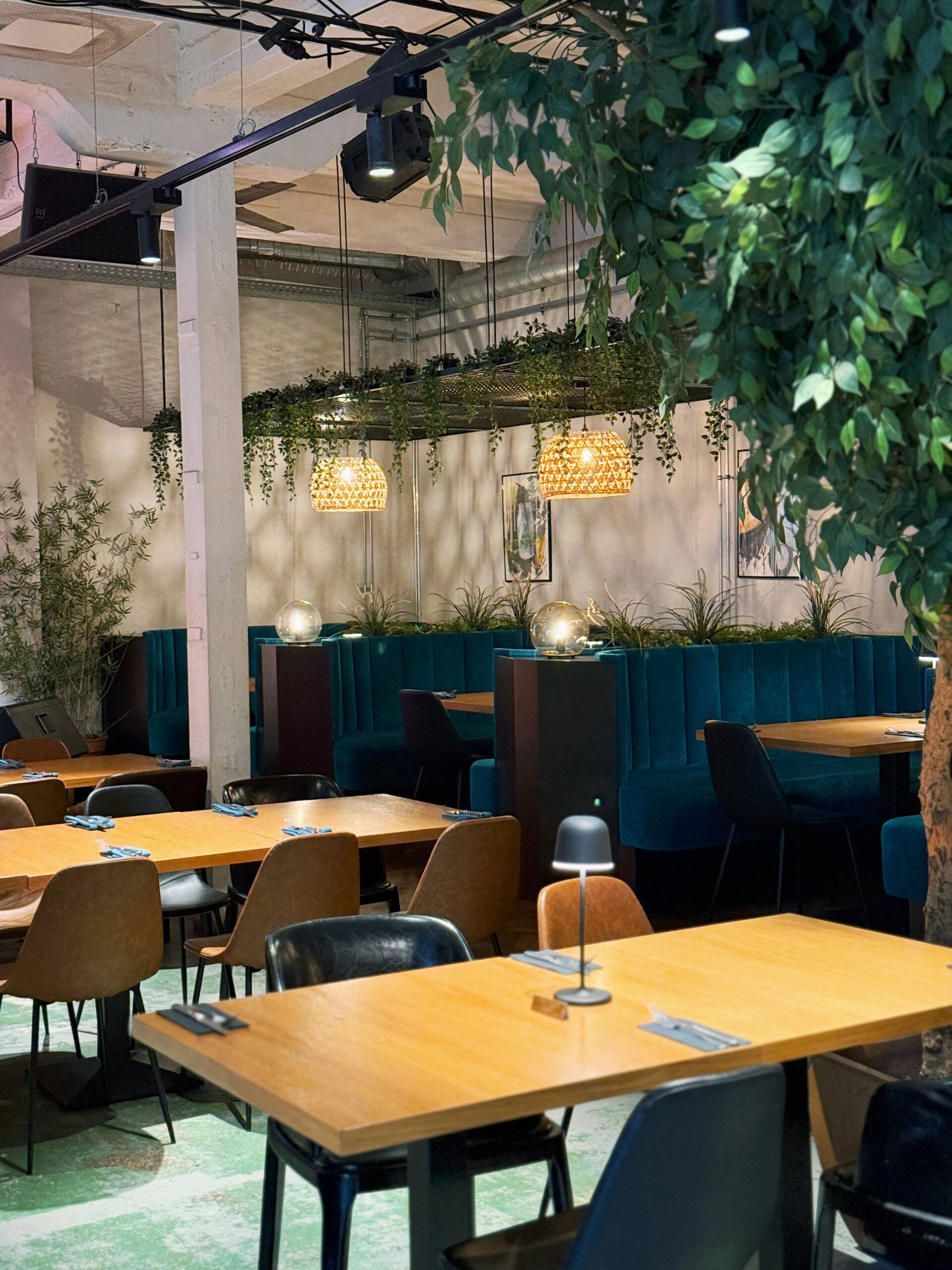 Plašās un gaišās zāles interjerā ir apvienoti industriālā lofta elementi ar spilgtiem dizaina akcentiem. Ērtais plānojums ar vairākām zonām ļauj izvēlēties ideālu vietu gan romantiskām brokastīm divatā, gan biznesa tikšanās reizei, gan ģimenes vakariņām, gan pasēdēšanai draugu lokā. Atsevišķa zona ar atvērtu virtuvi, picas stūrītis un stilīgs bārs – visa telpa šķiet radīta gastronomiskam baudījumam un socializācijai.