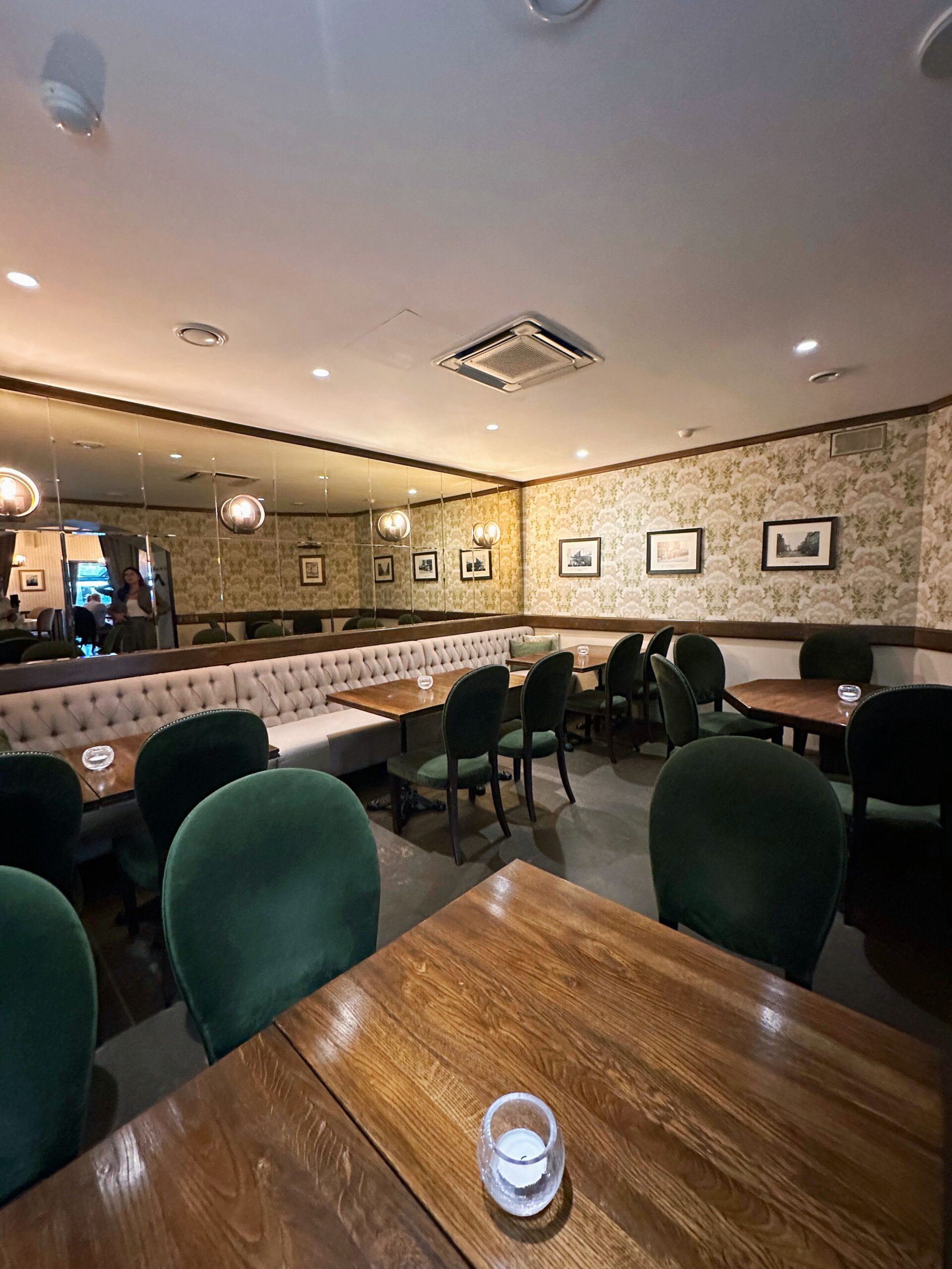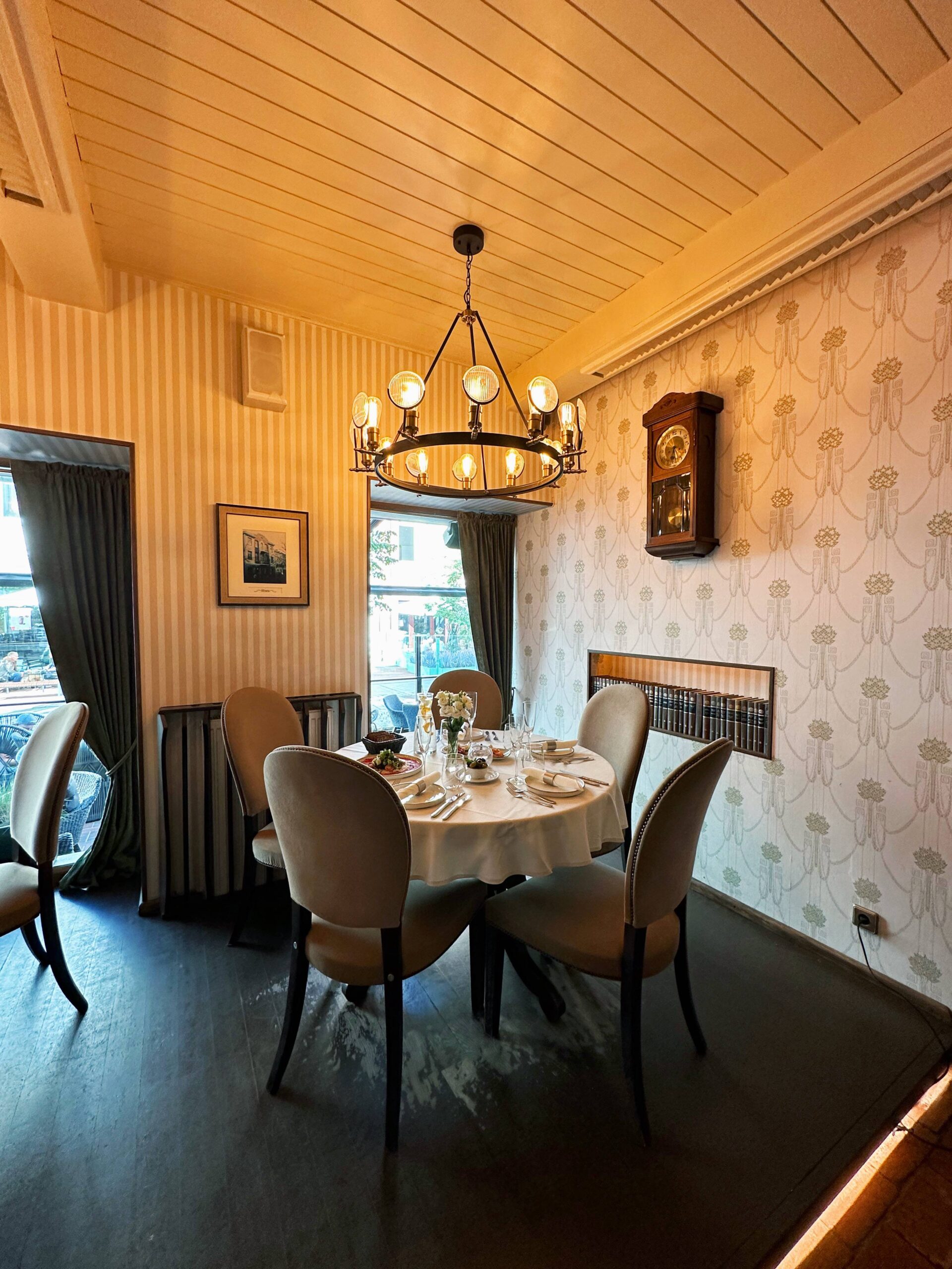 Plašā, skaistā zāle ir sadalīta vairākās zonās, tostarp ir privāta zāle nelielām svinībām 25 personām. Vasarā restorānā ir atvērta terase, kur var apsēsties ērtos krēslos un baudīt vakariņas vai kokteili, klausoties pilsētas skaņas. Darba dienās no plkst. 11.00 līdz 14.00 tiek piedāvāts īpašais pusdienu piedāvājums.