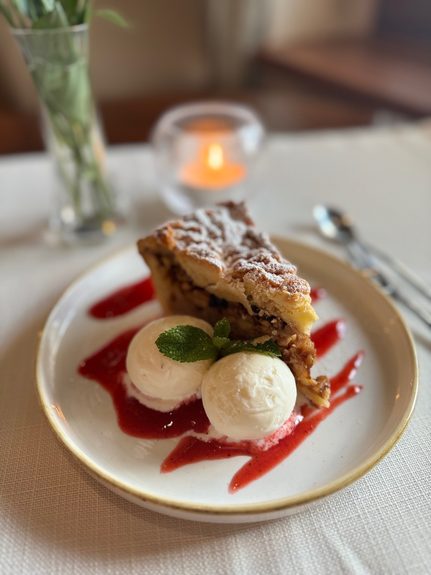 – īpašo ābolu pīrāgu ar saldējumu, kas pagatavots pēc vairāk nekā 20 gadus senas receptes.