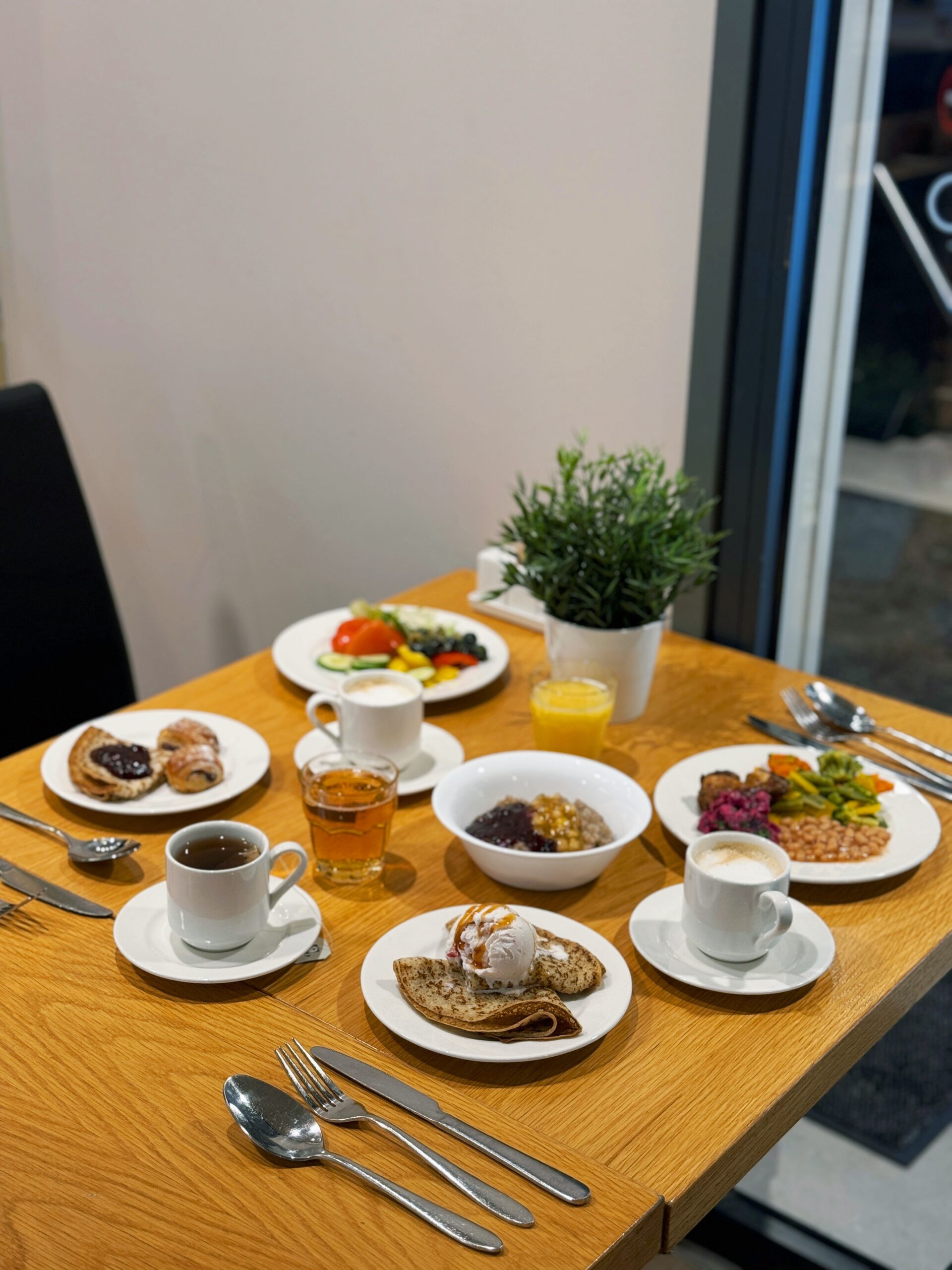 No rītiem restorānā tiek pasniegtas lieliskas zviedru galda tipa brokastis ar plašu ēdienu izvēli: uzkodas, siltie ēdieni, svaigi konditorejas izstrādājumi, deserti un daudz kas cits.