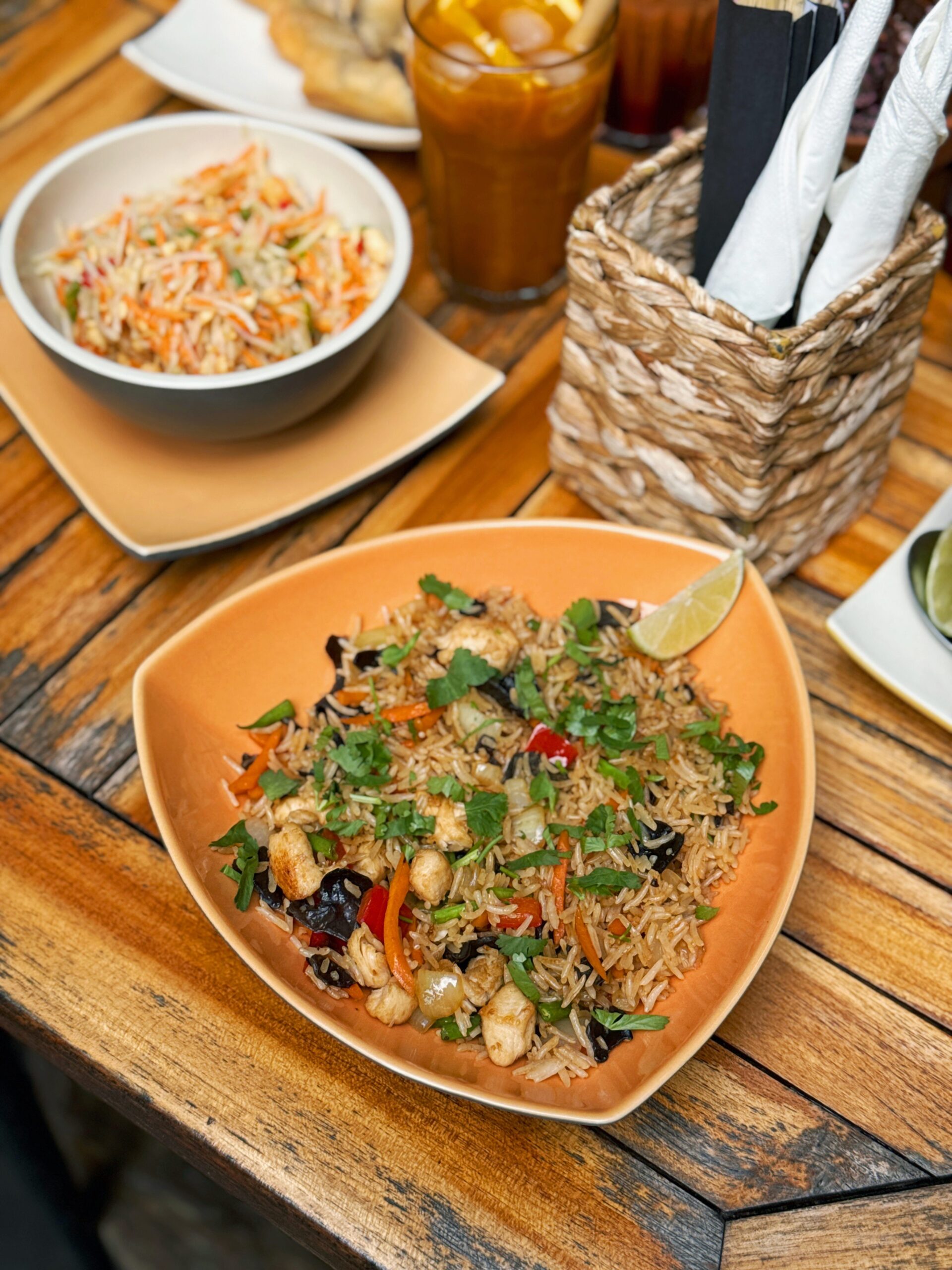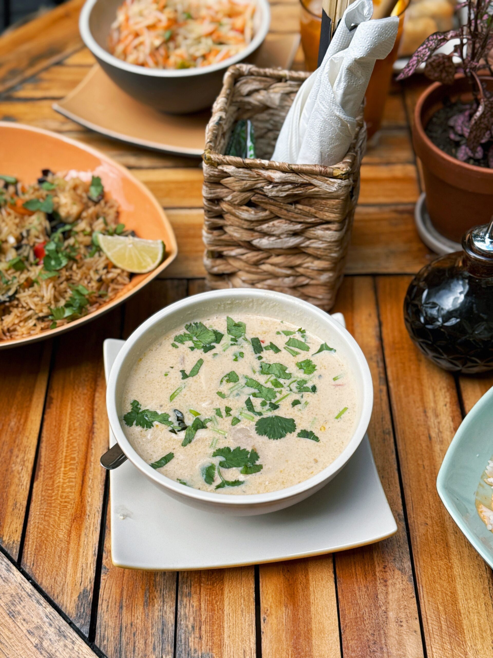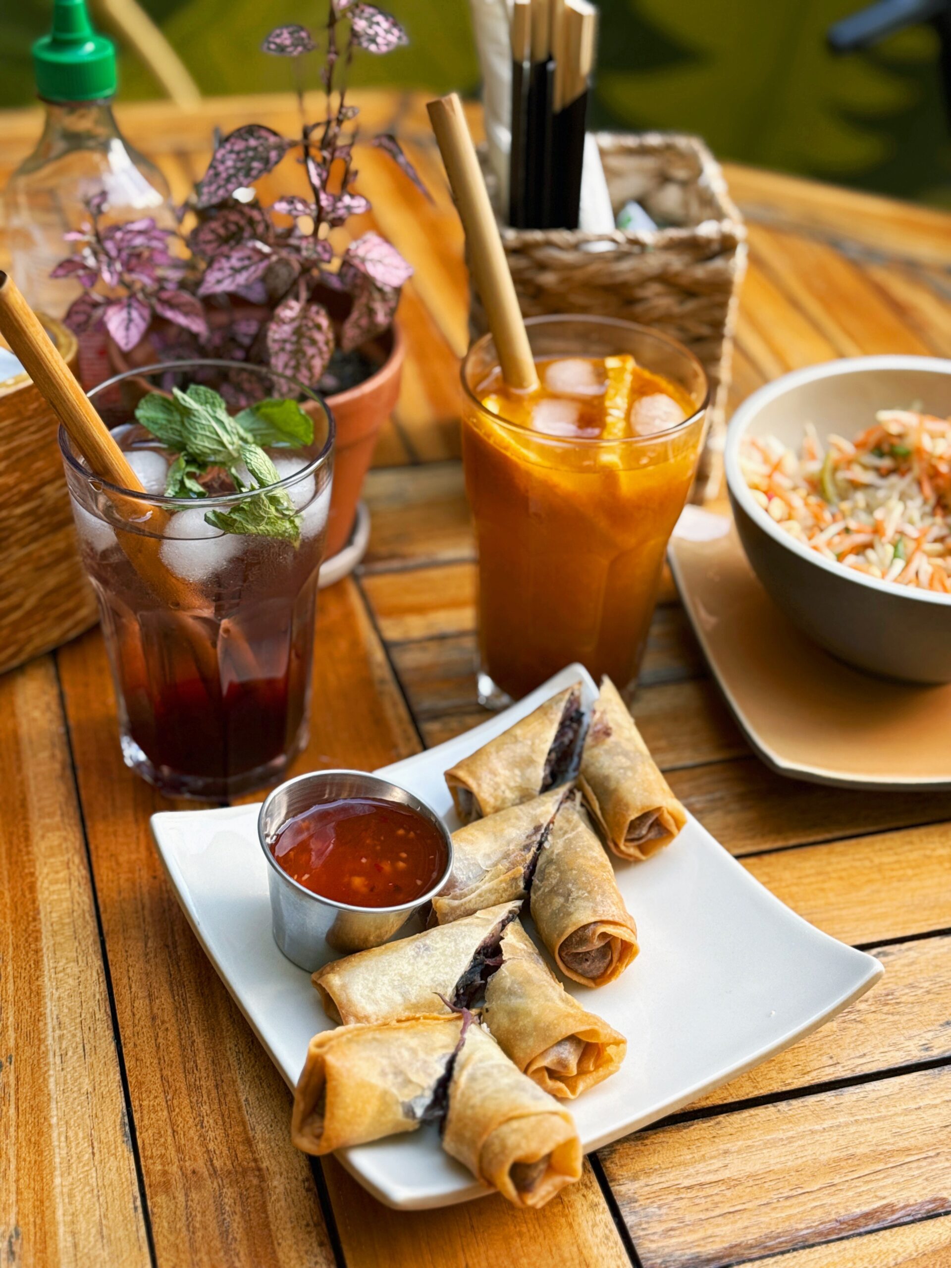 pad tau, sarkano kariju, tom kha un pavasara rullīšus.