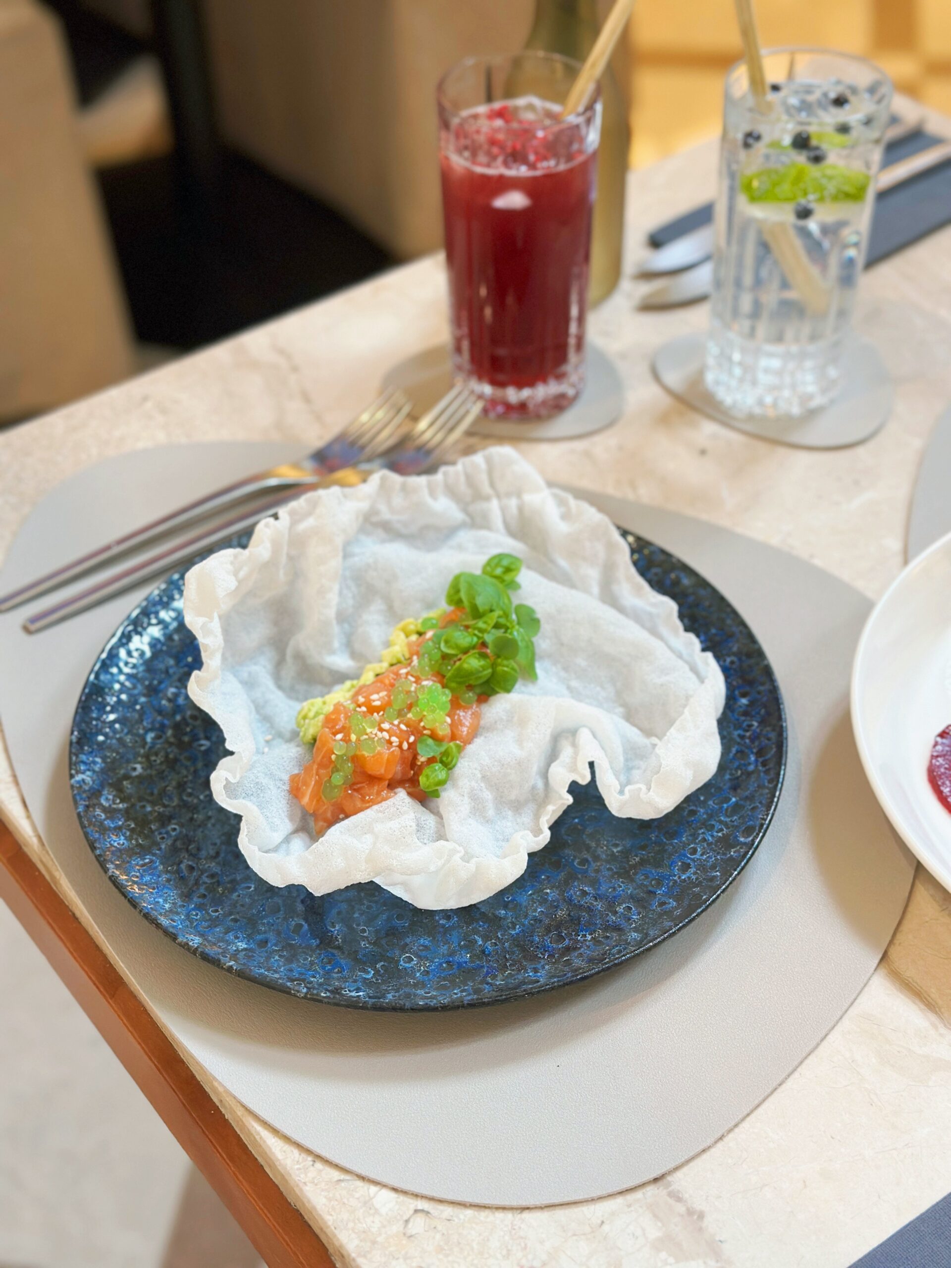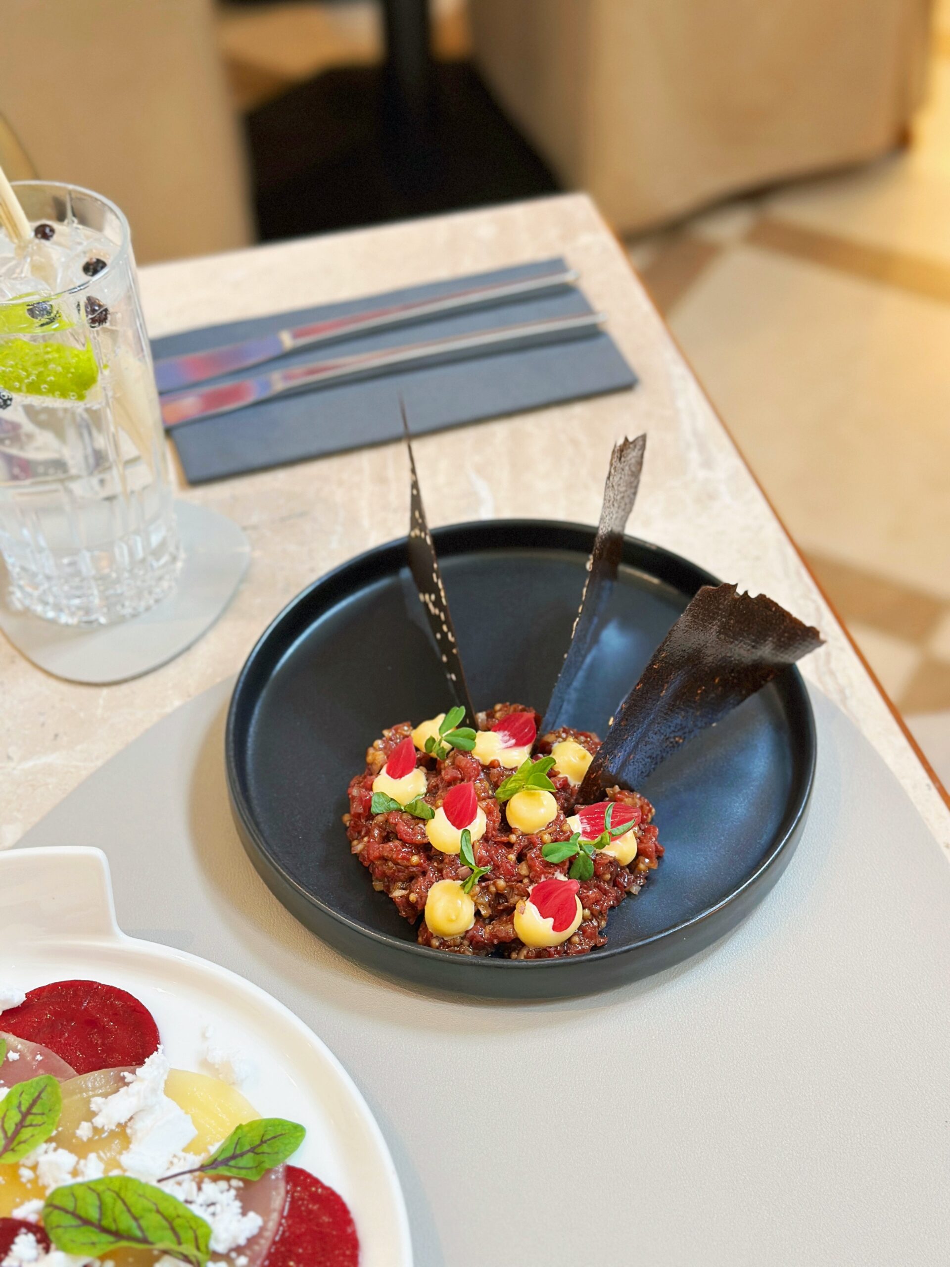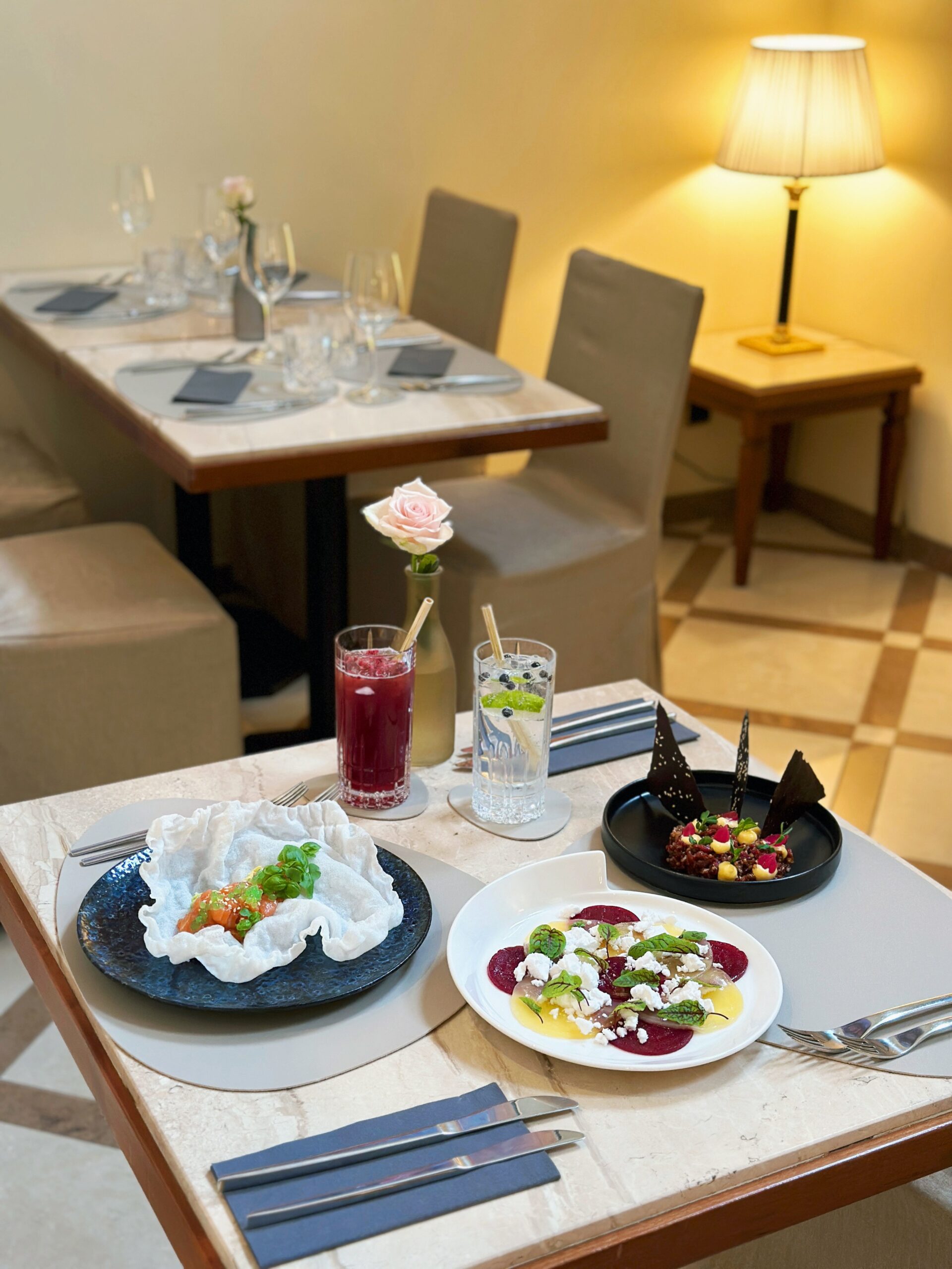A la carte menu embraces a variety of dishes. From 12:00 to 16:00, you can take advantage of a three-course lunch for only 18€. A 6-course tasting menu is available from 17:00 to 20:00.