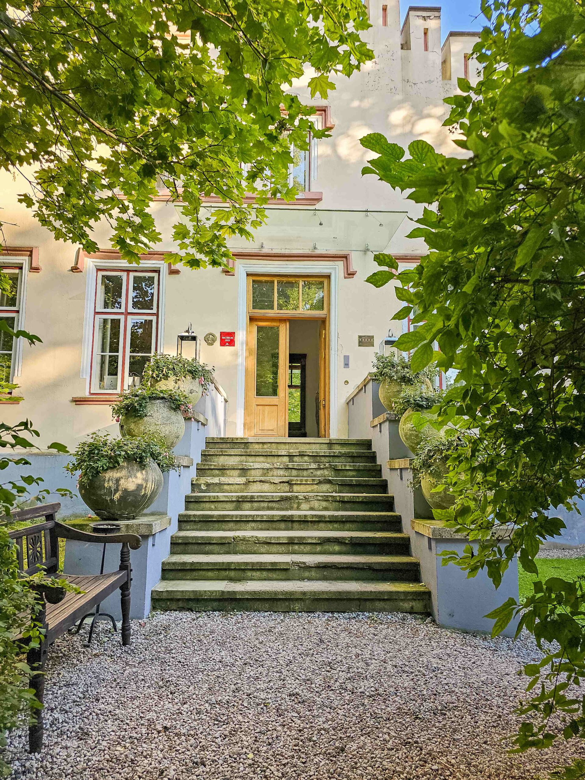 The estate invites exploration: meadows stretching to the shoreline, nature trails, quiet corners, and recreational areas. For special occasions, a spacious hall and outdoor areas offer an elegant setting for weddings and private gatherings.