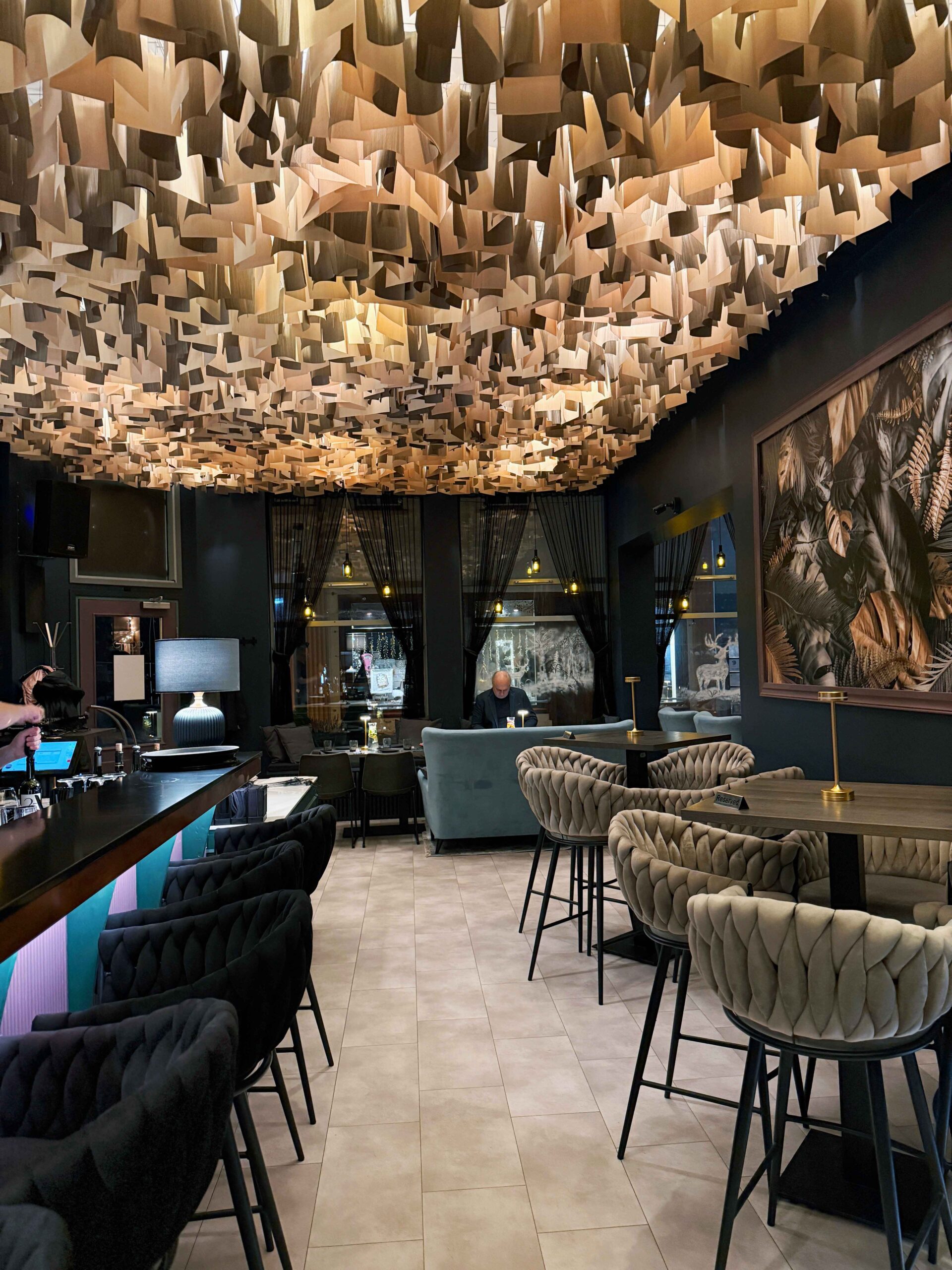 Сперва Como поразит вас своим великолепным интерьером, выполненном в темных тонах. Внимание сразу привлекает необычный потолок и большие стеллажи с винами. Благодаря продуманному дизайну в зале царит очень уютная атмосфера, располагающая к неспешной беседе с друзьями и близкими. Пока ждете заказ, вам точно захочется сделать несколько фотографий в этом интерьере на память о вечере. Летом открыта терраса. По пятницам и субботам вечером диджеи порадуют отличной музыкой в стиле lounge.