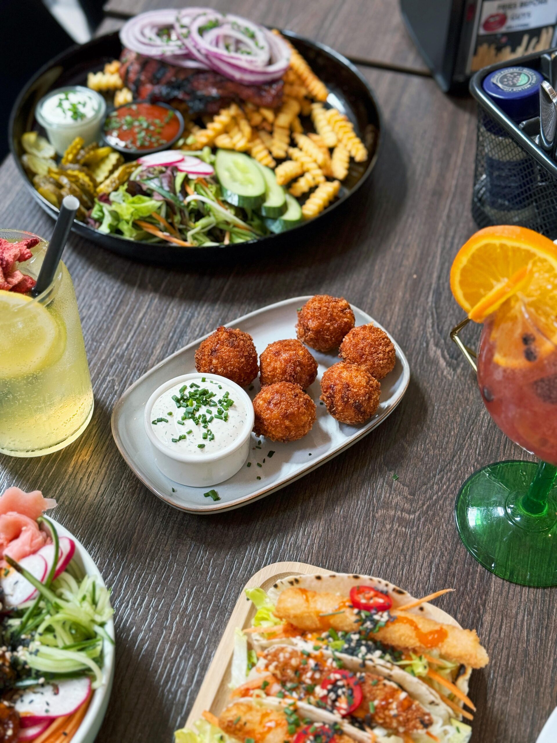 – фирменные сырные шарики с чесночным соусом,
