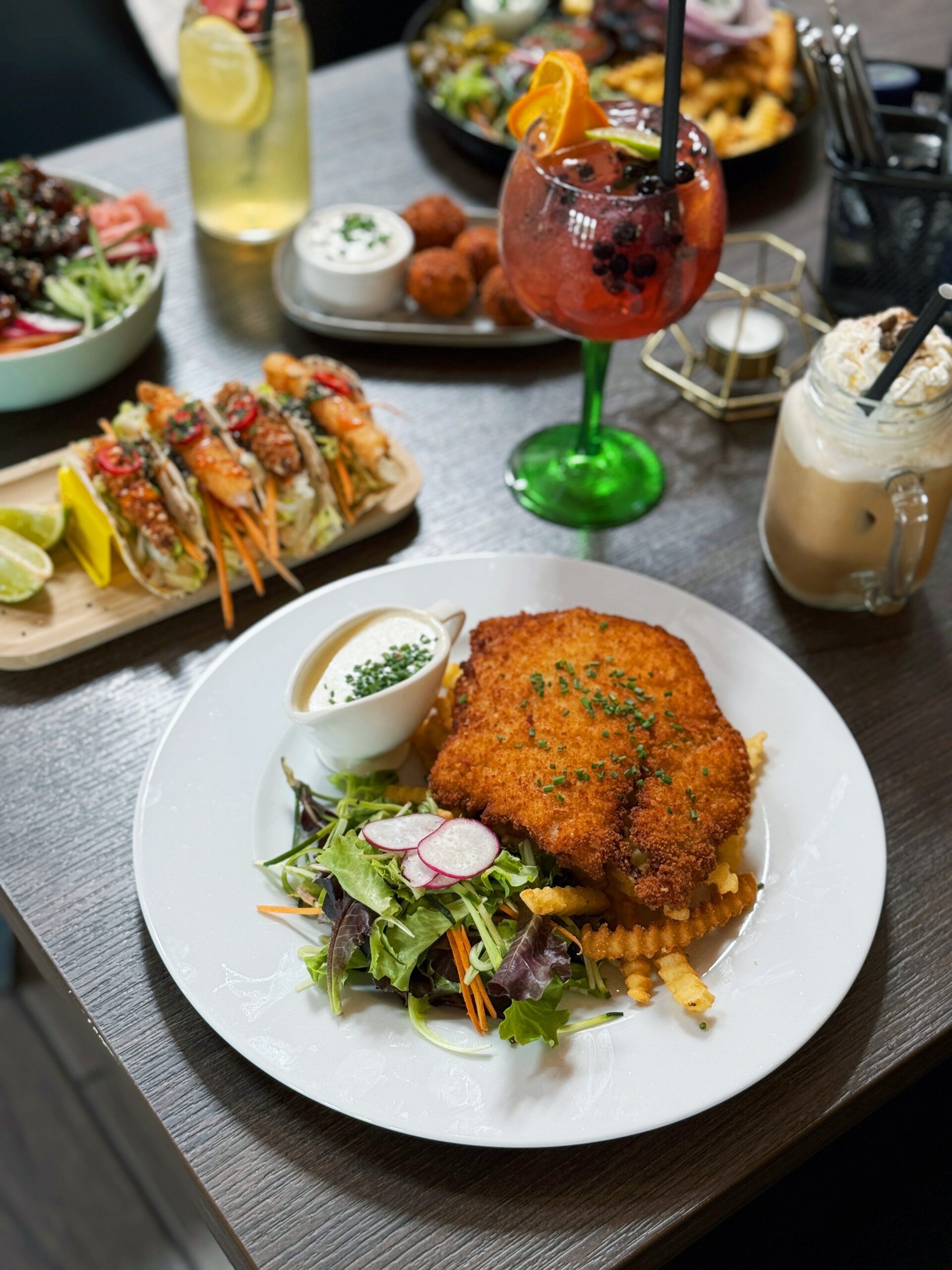Стейки занимают особое место в меню и отличаются потрясающим вкусом, потому что все гриль-блюда готовятся в особой угольной печи Big Green Egg. Основные блюда советуем дополнить фирменными напитками.