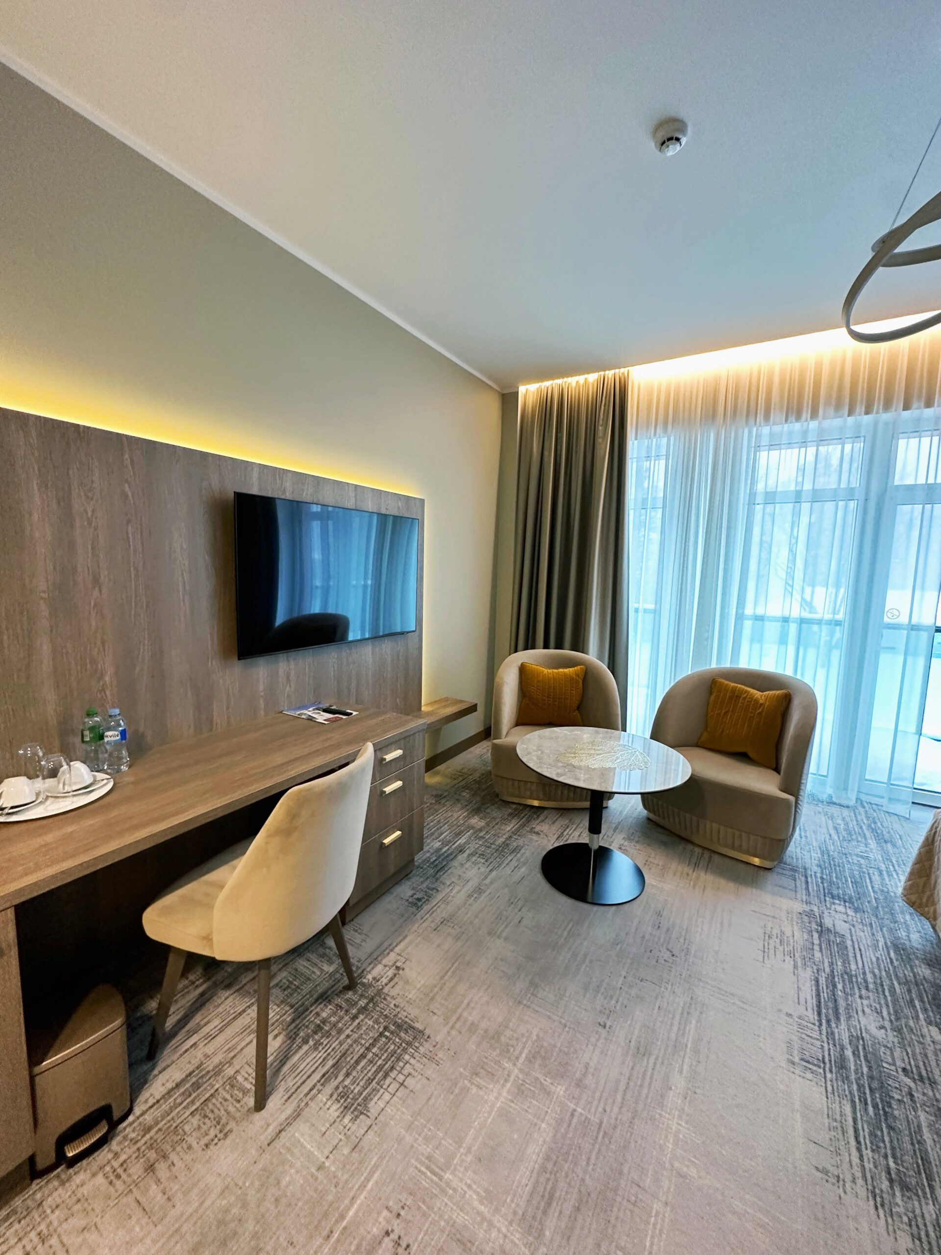 Комплекс предлагает современные комфортные номера разных классов: одноместные, двухместные, минилюксы и апартаменты. Номера оформлены в скандинавском стиле и оборудованы всем, что нужно для отдыха: помимо больших удобных кроватей есть рабочая зона, телевизор, WiFi, кондиционер, ванные принадлежности. Из окон открывается вид на красивый парк.