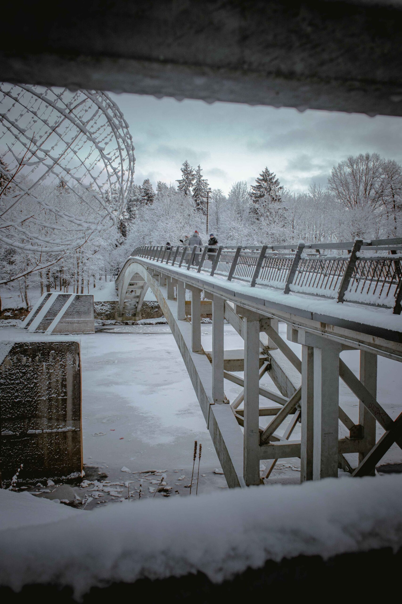 В начале променада находится пешеходный мост через реку, который считается самым большим арочным мостом в Латвии.