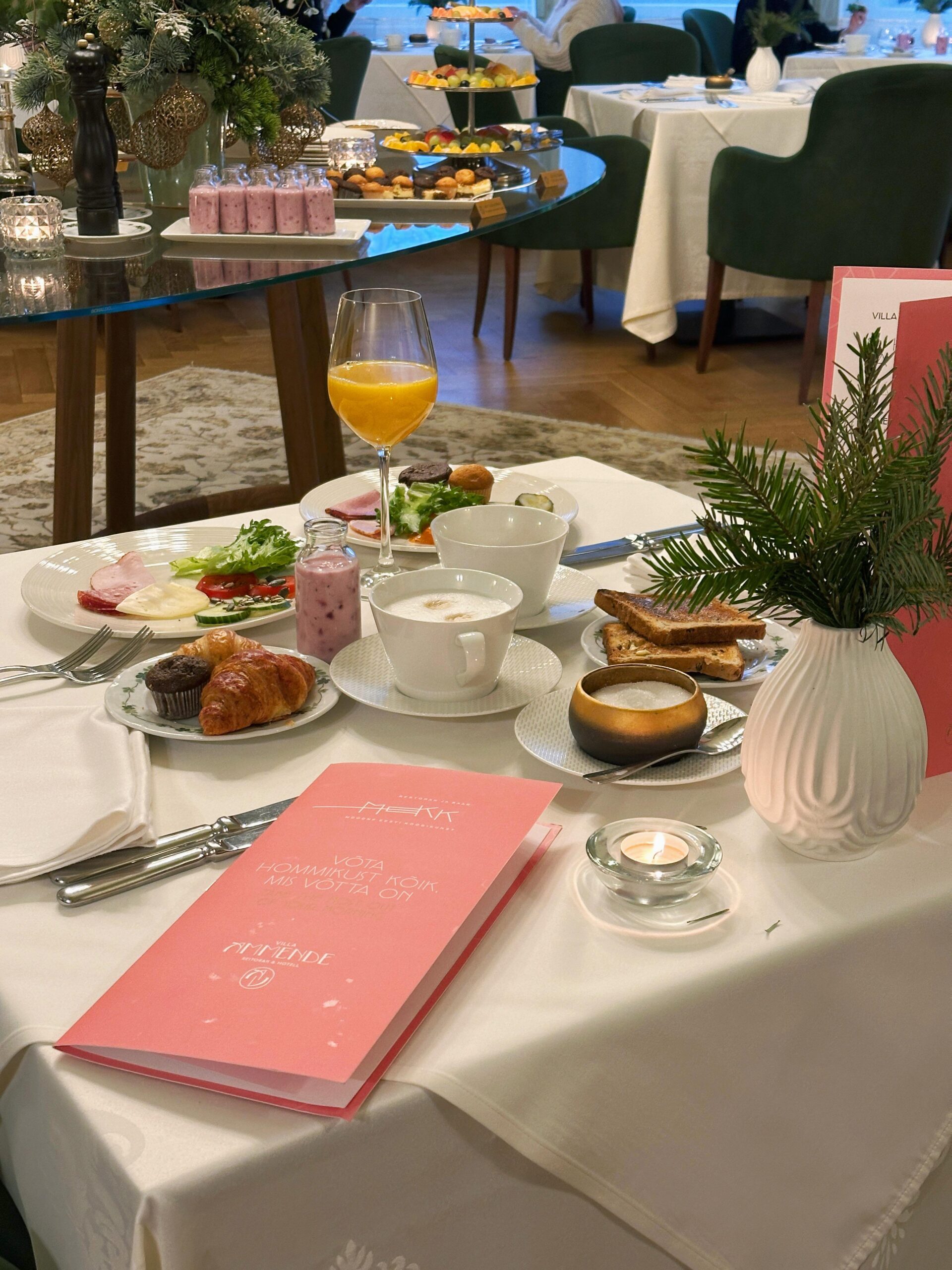 Со вторника по субботу в ресторане можно пообедать по меню à la carte, которое предлагает блюда современной эстонской кухни. Каждое блюдо это произведение искусства, отличающееся оригинальными вкусовыми сочетаниями и элегантной подачей. Есть также детское меню.