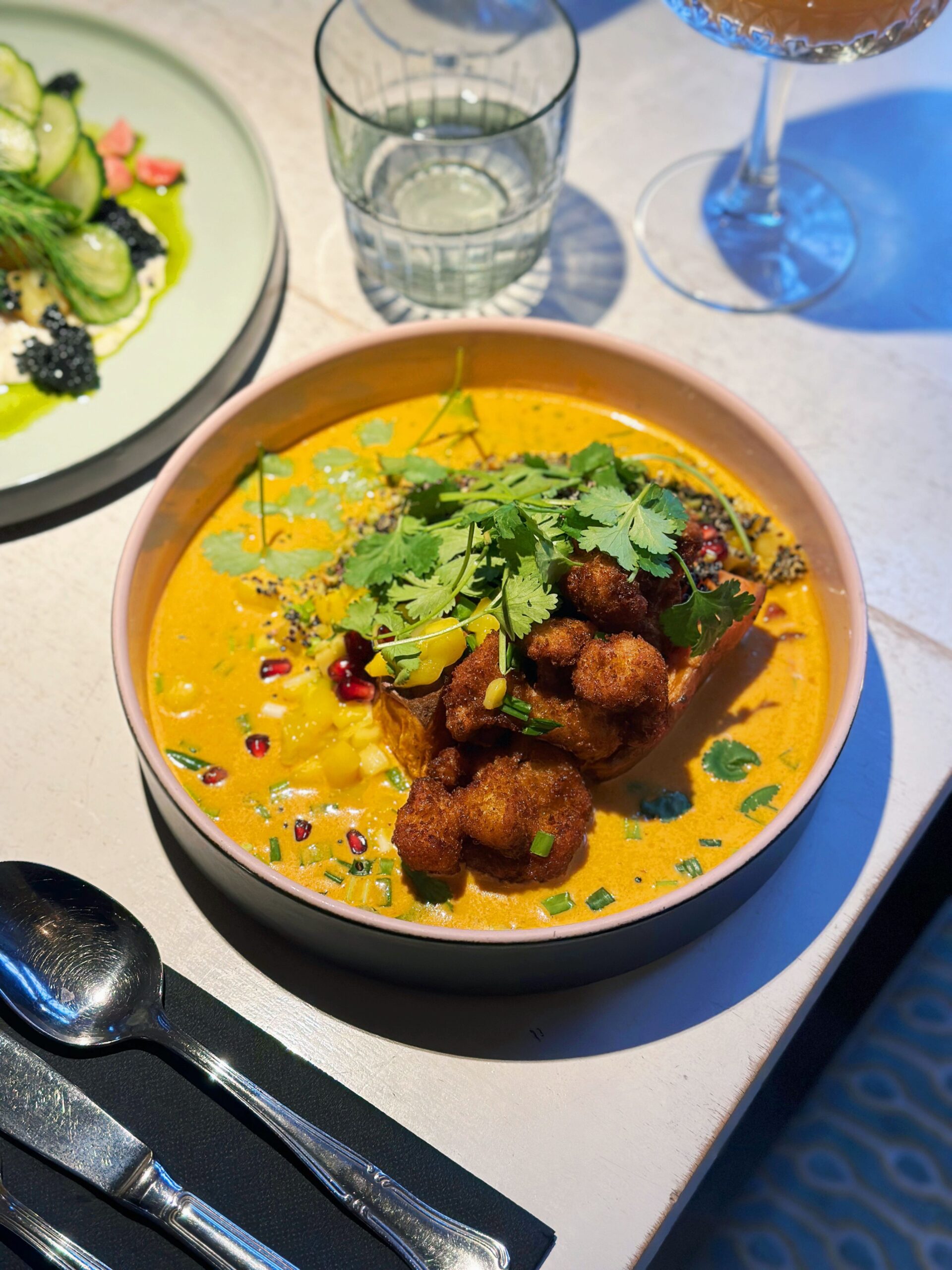 – baked sweet potato with breaded cauliflower,